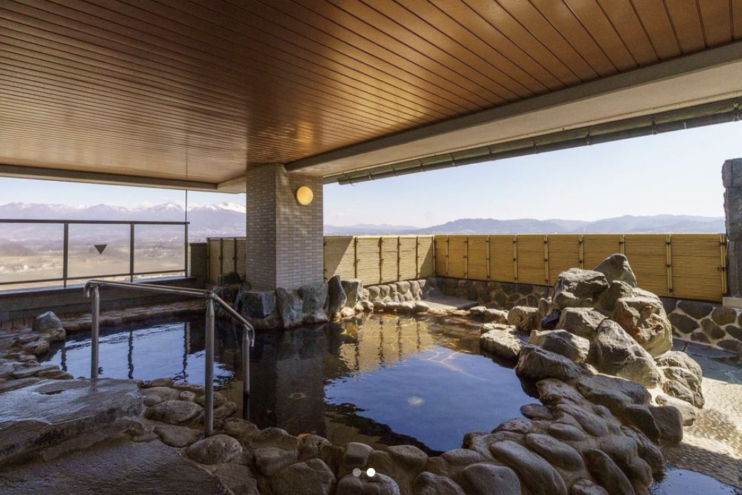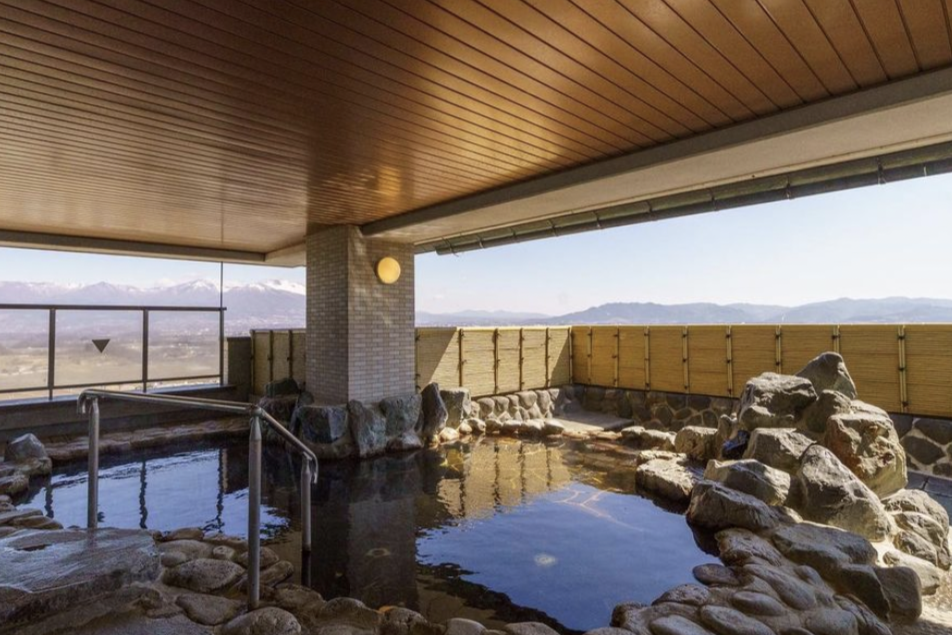 ・露天風呂付きの天然温泉:本館5階には浅間山を一望できる露天風呂があり、チェックイン前もチェックアウト後も利用可能。