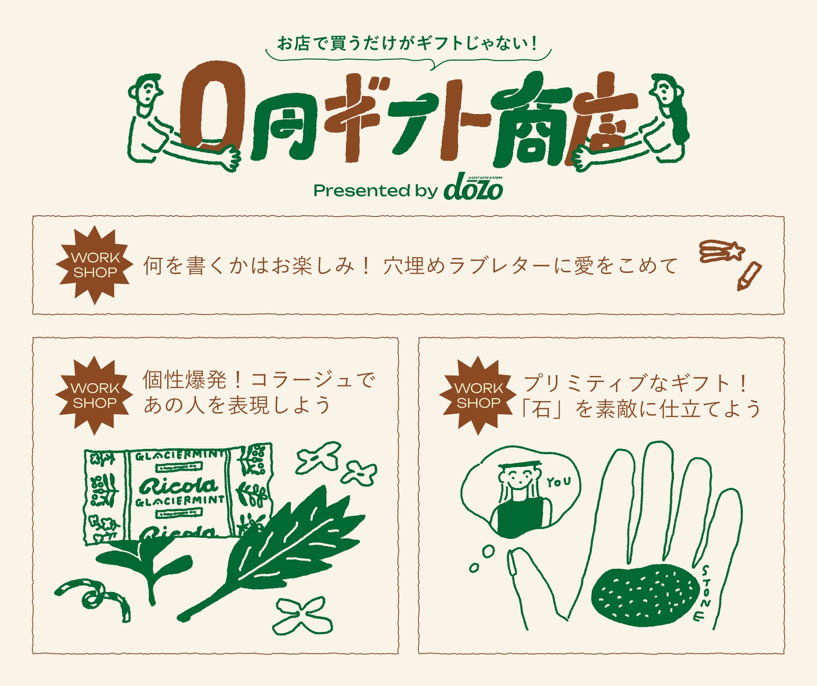 「お金をかけなくても、心に響くギフトは贈れるはず!」というコンセプトのもと開かれる一日限りのお店、それが『0円ギフト商店』。森の映画祭にいっしょに来た人と“贈りあい”を楽しめるとっておきのギフト体験を、0円で販売します。