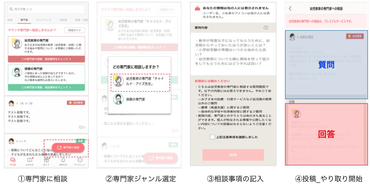 ・アプリ内「専門家」タブに新設の『幼児教育の専門家』コーナーより幼児教育に関してご質問ください。