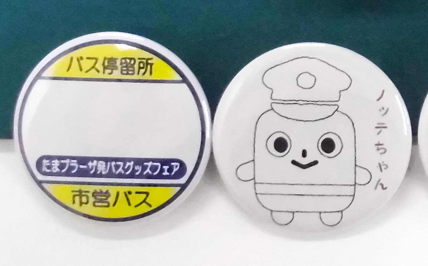 ノッテちゃんのぬりえやバス停看板のイラストで缶バッジを作成いただけます。