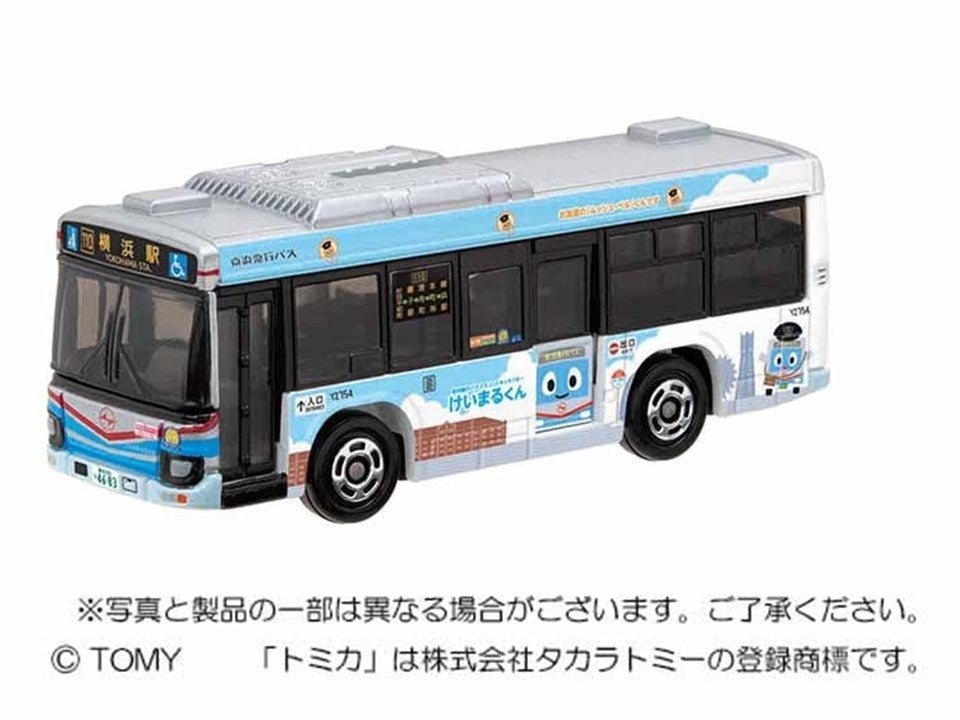 京浜急行バスのマスコットキャラクター「けいまるくん®」のラッピングが施された「いすゞエルガ(杉田営業所所属Y2754号車)」をモデルにしたトミカです。横浜みなとみらい地区の風景をモチーフにしたデザインと「けいまるくん®」が大好評です。