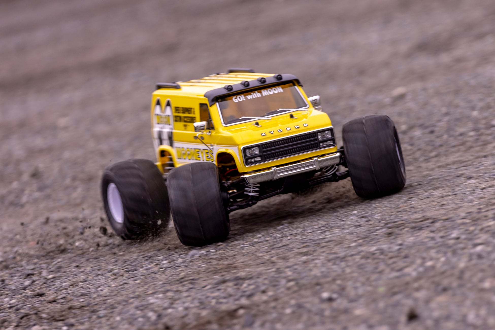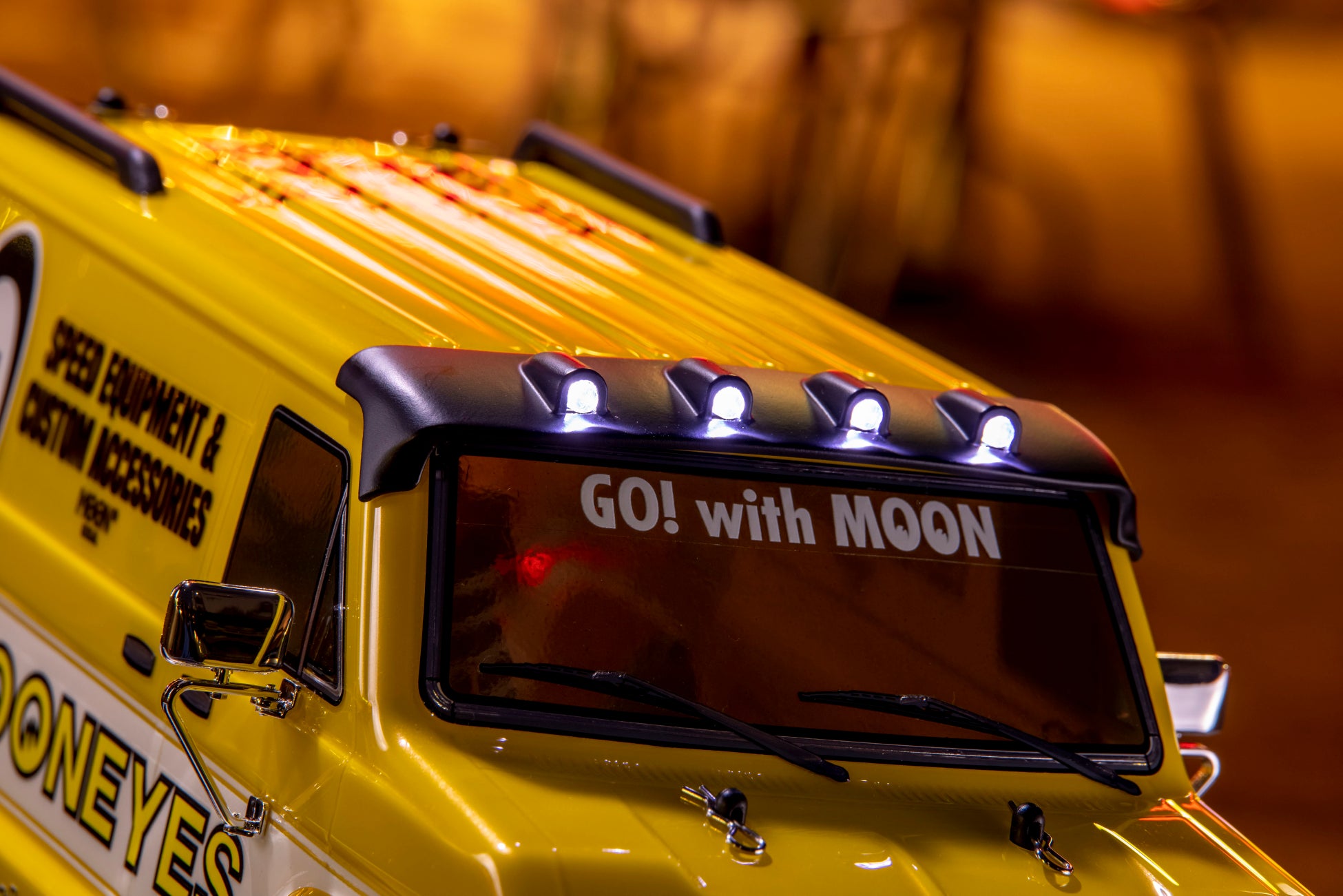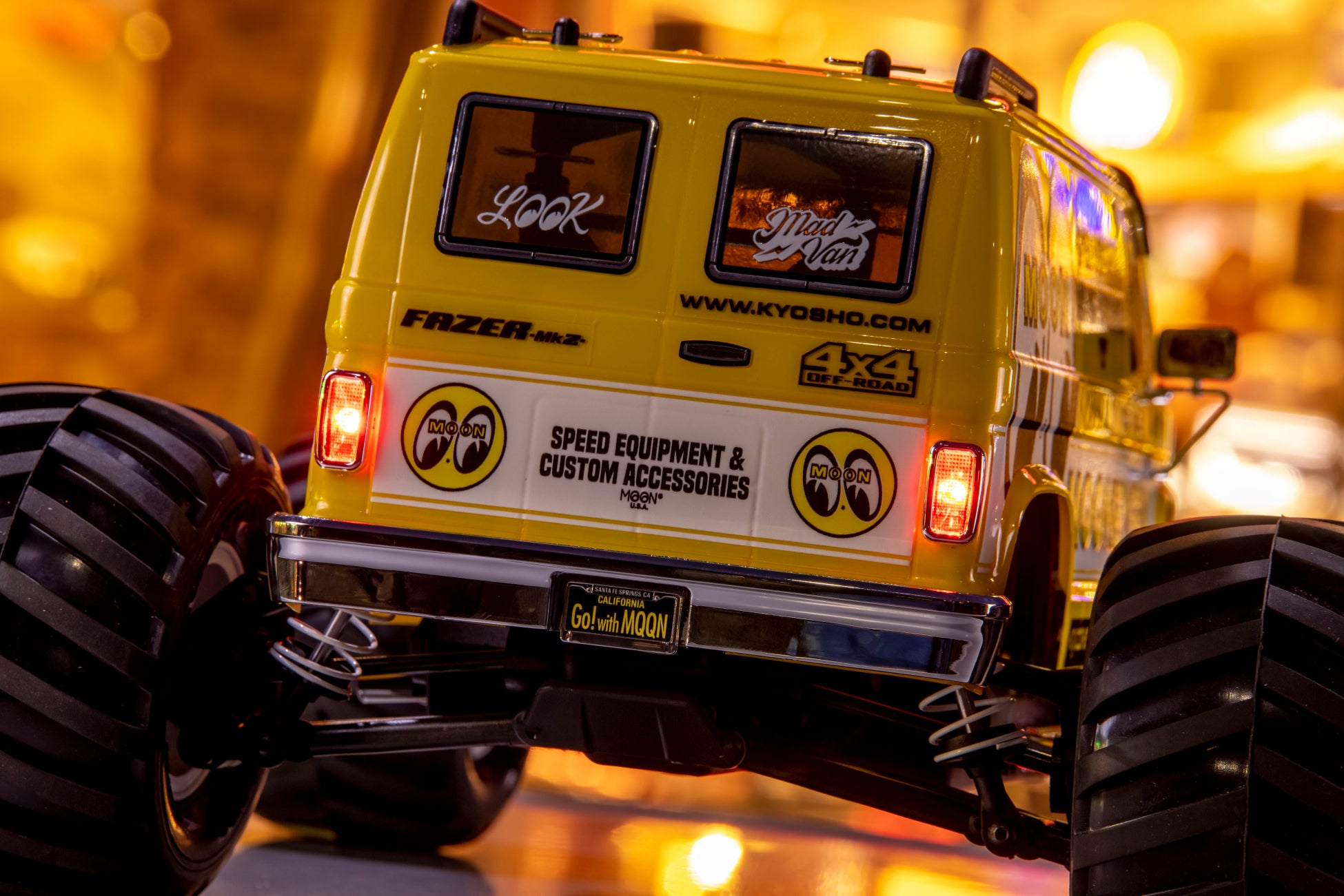 ポリカーボネート製のボディは、全体的に角張ったフォルムが特徴となる1970~1980年代のアメリカンフルサイズバンをイメージしてデザイン。大径&ワイドタイヤとの組み合わせがファニーな雰囲気をかもし出す。