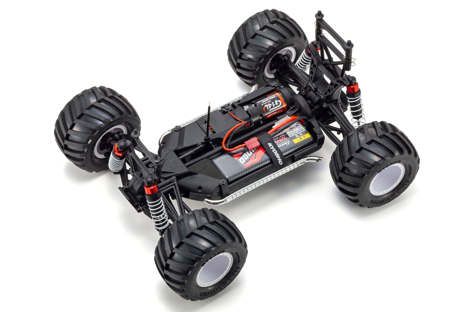 誰もが憧れた古き良きアメリカンフルサイズバンの象徴的なスタイル。そのファニーでノスタルジックなボディに、MOONEYES(ムーンアイズ)のアイコニックなカラーリングと熱いカスタムスピリットを宿した「マッドバン with MOONEYES」が登場。ボディの随所には、MOONEYESとのコラボレーションを物語る特別なアイテムやディテールを身に纏い、所有する喜びを高めます。そして、FZ02L-BTシャシーはメンテナンス性を高めるためにパーツ点数を極限まで絞り込みながらも、走行性能に必要な高い強度と剛性を徹底的に追求。シンプルなデザインの裏側には、前後ステフナーや各所に設けた補強リブ、使用する材料の吟味などによって走行に適した高い強度と剛性を確保。加えて、極力シンメトリーとなるようなデザインを採用することで、前後バランスに優れるサスペンションや車格に見合ったパワーソースとの相乗効果によるクセのない素直な操縦性も獲得。そのうえで前後ギヤデフ、オイルダンパー、フルボールベアリングを採用。高い耐久性と耐衝撃性も確保して、ドライバーを確実にサポート。また、ソフトコンパウンドやインナースポンジを採用して高いグリップ力を確保したオールマイティな特性をもつ大径&ワイドタイヤは、ショルダー形状が適度にラウンドしていることもあってオフロード走行はもちろん、オンロード走行でも高い走破性を発揮。すべてが工場で完成しているレディセットですので、走行用バッテリー/走行用バッテリー用充電器/送信機用単3電池4本を別途購入すれば、すぐに胸躍る走行体験をお楽しみいただけます。カリフォルニアの自由なスピリットを体現したMOONEYES仕様のマッドバン。そのファニーで愛嬌のあるルックスの裏側には、本格的な走りを存分に楽しめるシャシー性能が隠されています。さあ、道なき道を駆け抜けて、最高のR/Cカーライフを謳歌してください。