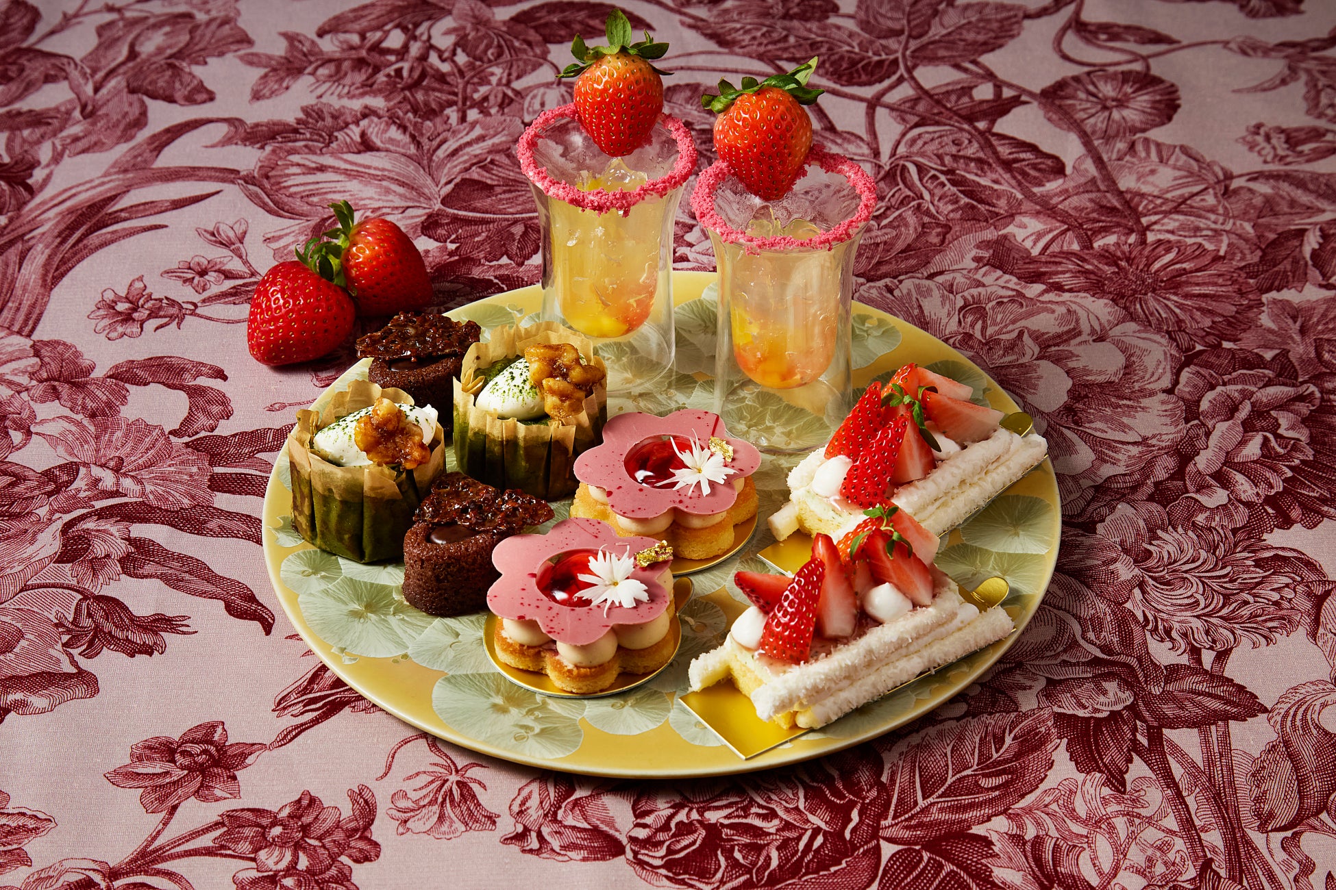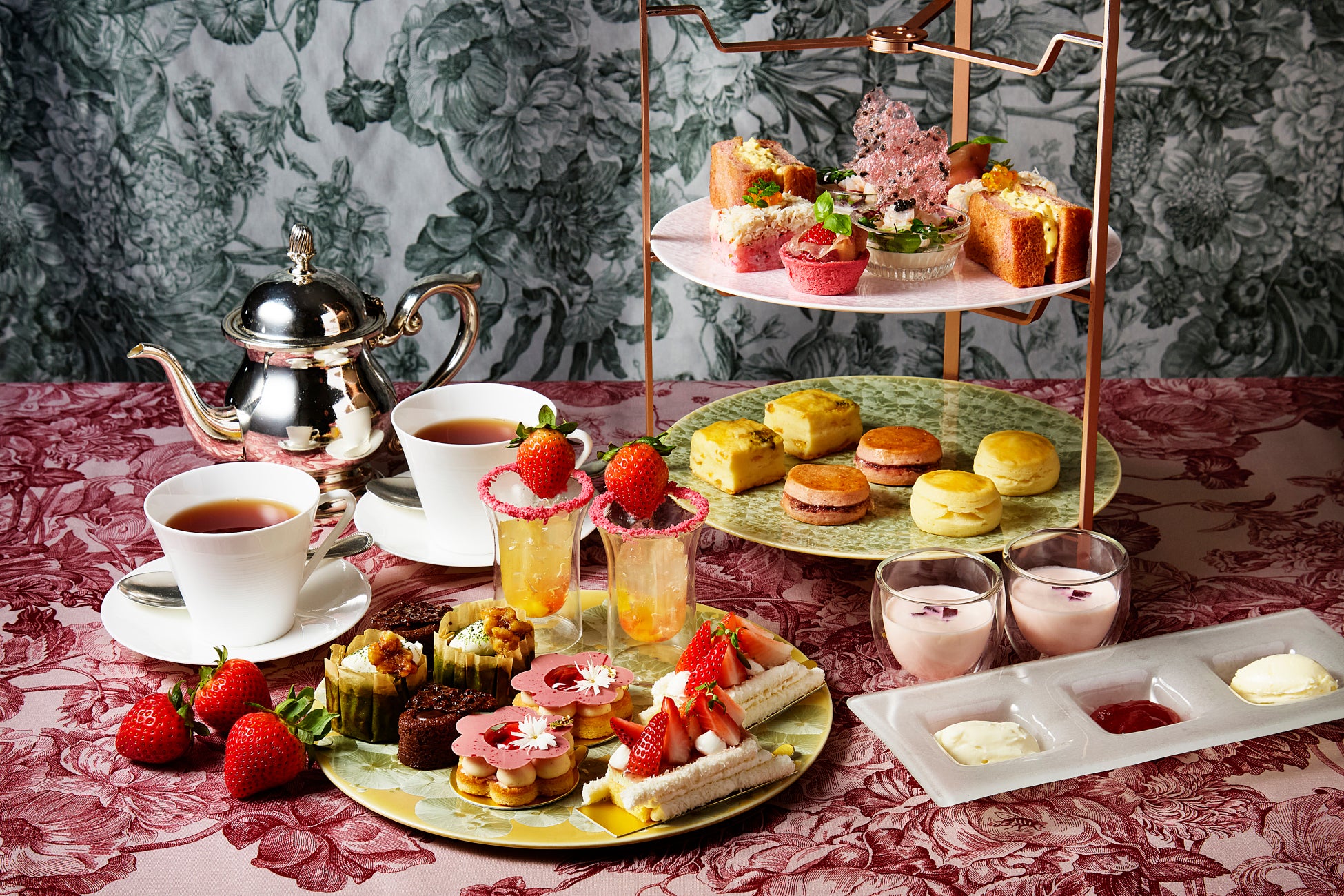 都会の喧騒とは一線を画した非日常を感じられる優雅な空間で、プレートを淡いピンク色に彩るストロベリーアフタヌーンティーで旬の美味を、こころゆくまでお楽しみください。