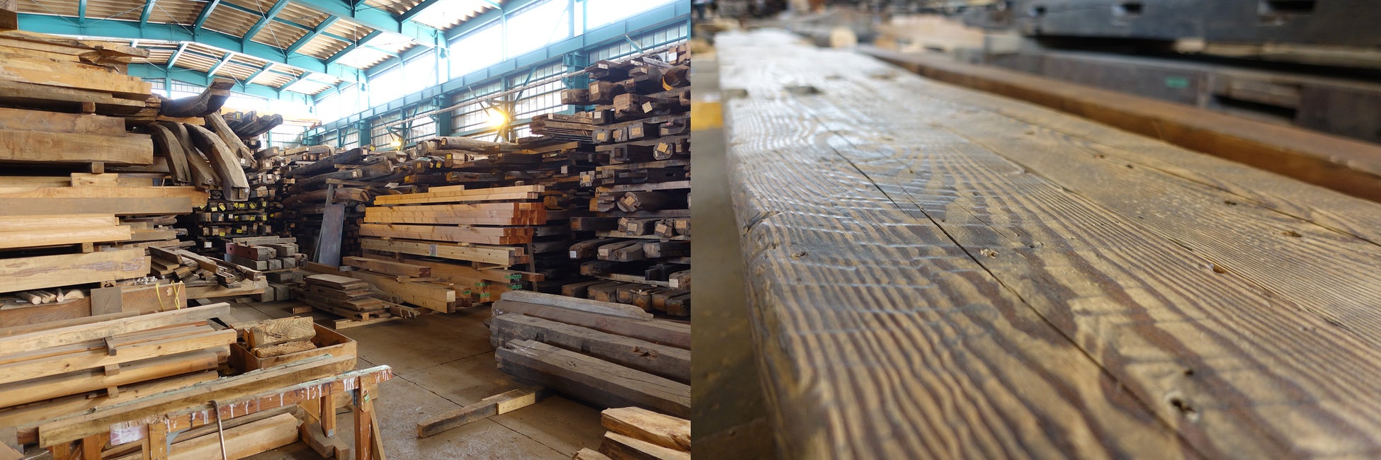 日本の伝統的な木材の加工方法、釿(ちょうな)を取り入れ、荒々しくダイナミックな波状の削り肌は釿を振り下ろして打ちつけることで木材の表面を削りだしています。軽井沢ストアのファサード看板は、戦前80年以上前に建てられた古民家の解体から発生した松の古木を取り入れました。