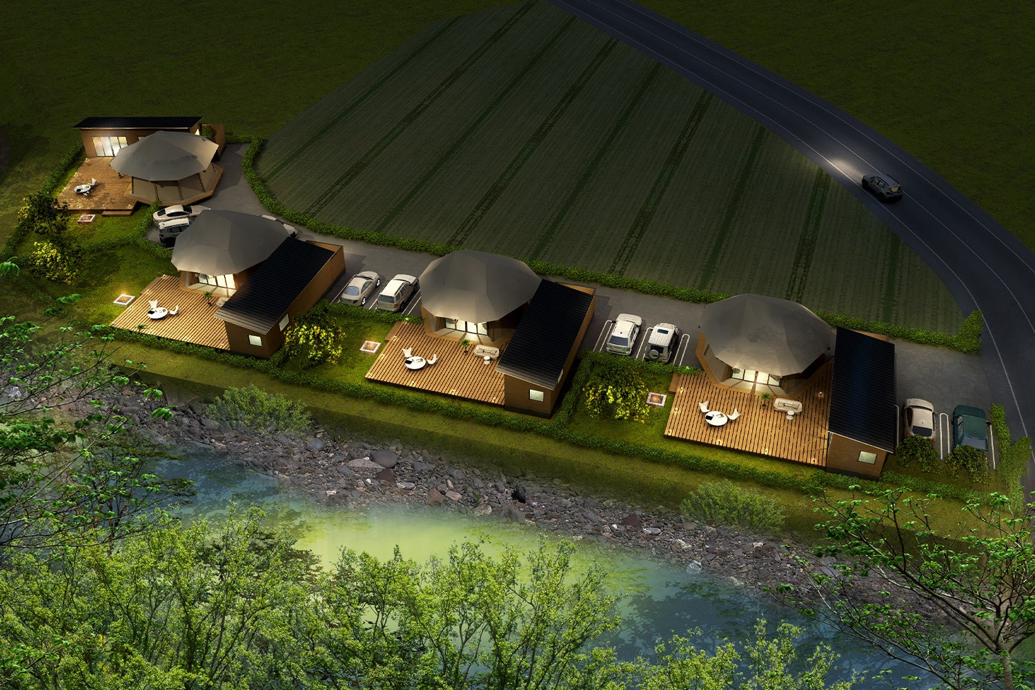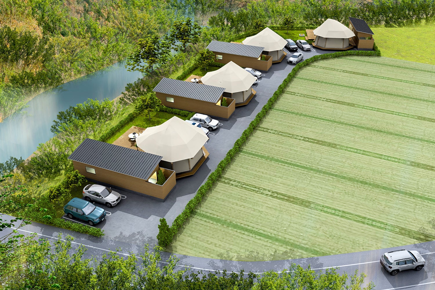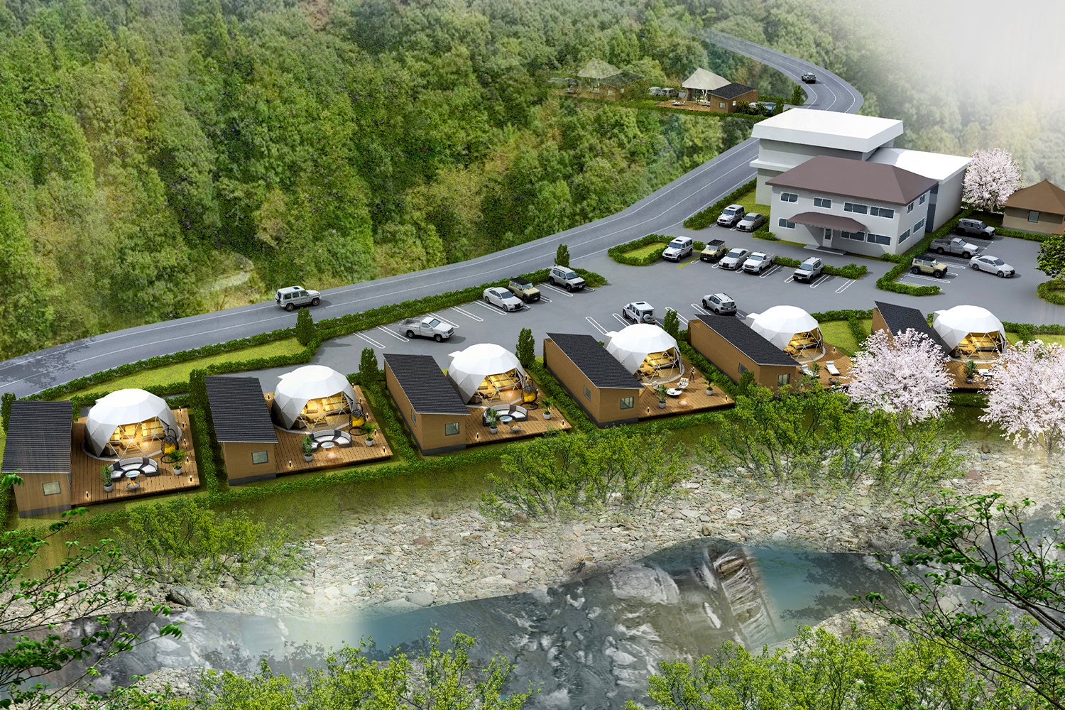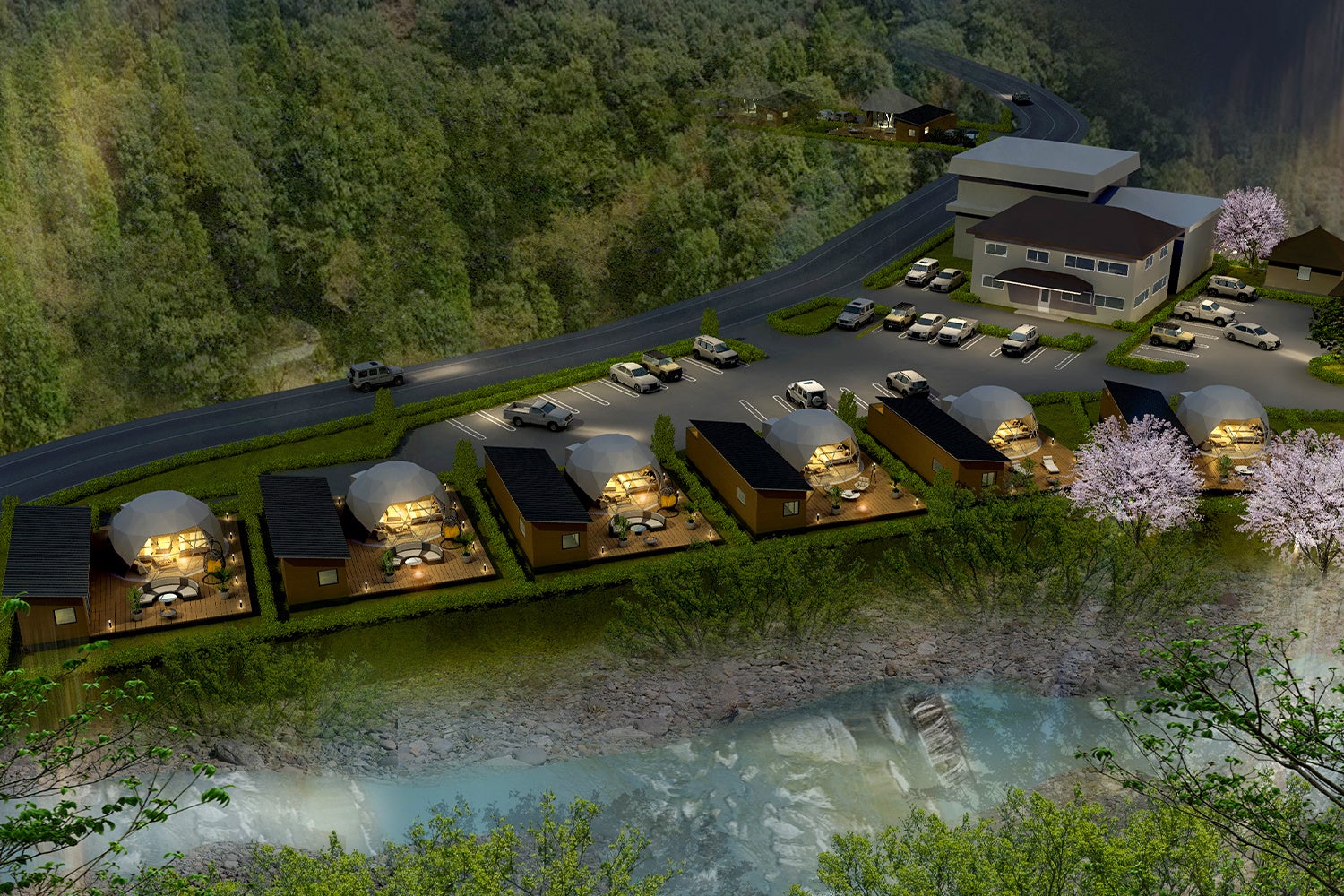 猪名川渓谷に連なる全13棟の一大アウトドアリゾート「リバーサイドグランピング猪名川-inagawa-」