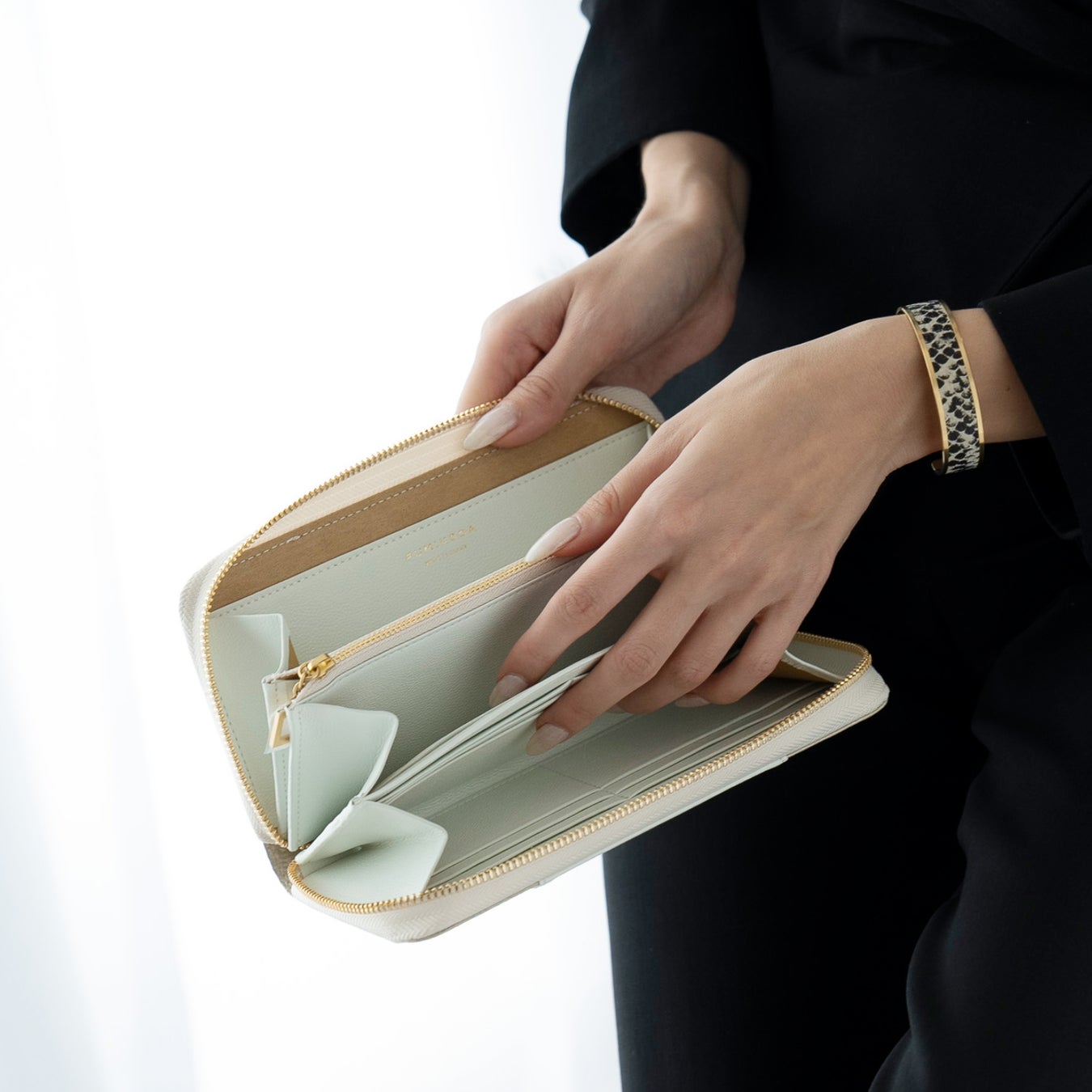 「VELA(ヴェラ)」は、大量のカードやスマホ、大きめの領収書、通帳、パスポートなども収納できる大容量の財布です。キャッシュレス化が進みコンパクトな財布が増える中、「でも、やっぱり沢山入る安心感」「オールインワン」を求めるお声が多く、完売していた商品を復刻しました。