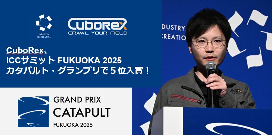 株式会社CuboRex(本社:東京都葛飾区、代表取締役:嘉数正人、以下CuboRex)は、2月19日に開催されたIndustry Co-Creation(以下 ICC)サミット FUKUOKA 2025「CATAPULT GRAND PRIX(カタパルト・グランプリ)」にて現場が抱える運搬の課題を解決する「不整地対応自動搬送ロボット」が評価され、5位入賞を果たしました。