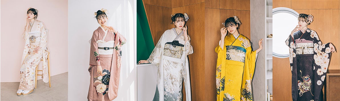 4着それぞれ異なった當真さんの魅力は、当社の振袖を通してさらに際立っています。シリーズ初となるハウススタジオ撮影で、振袖が映える4箇所のロケーションで振袖と當真さんの両方の美しさをお楽しみください。