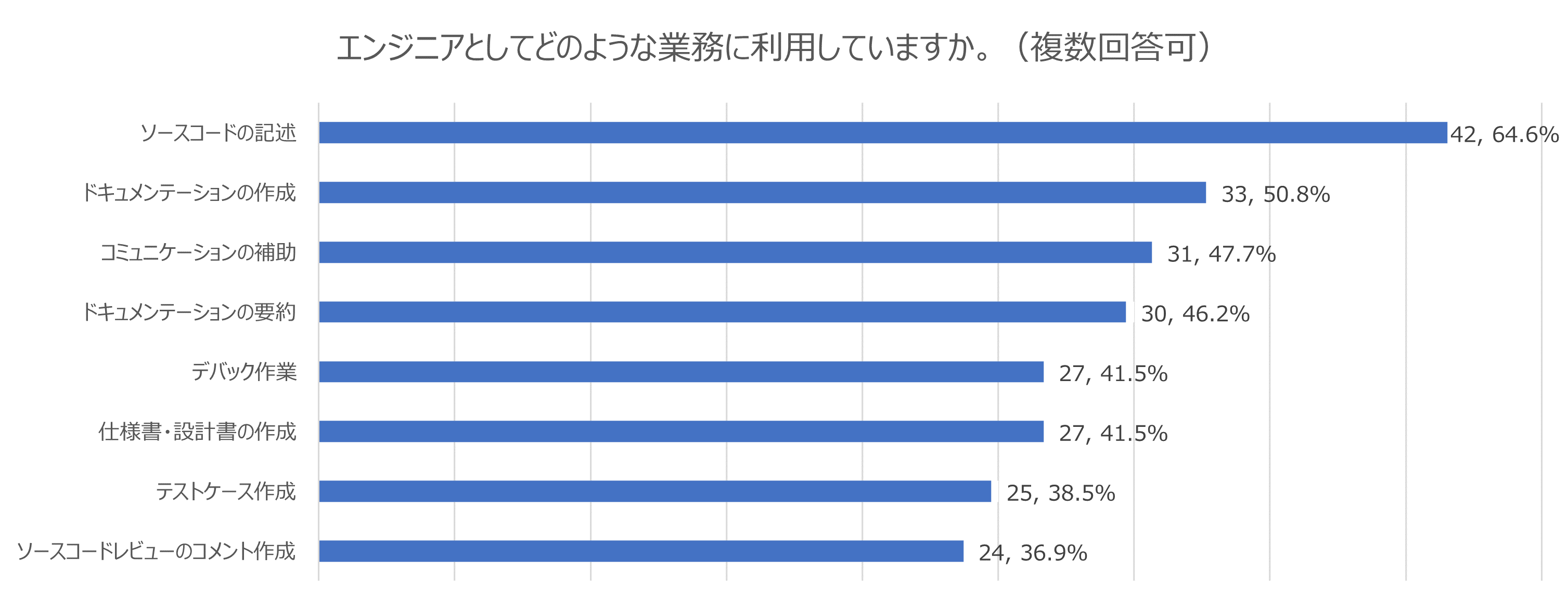 使途としては、「ソースコードの記述」が6割、次いで「ドキュメンテーションの作成」が5割