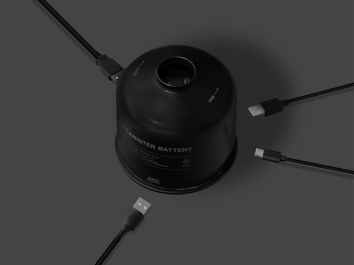 「PLAY OD CANISTER BATTERY」は、19,200mAhのバッテリーを搭載&6つのUSB充電ポートを配置した、キャンプ向けのタクティカルなポータブルハブバッテリーです。