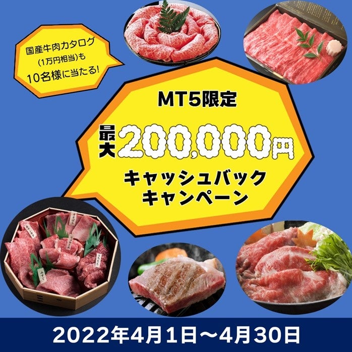 外為ファイネスト株式会社(本社:東京都千代田区、代表取締役:石野由美子)は、2022年4月1日より「MT5限定・最大20万円キャッシュバックキャンペーン」「MT4・ZERO限定!北海道グルメ&キャッシュバックキャンペーン」を実施中です。