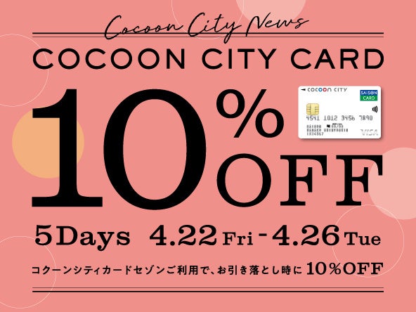 誕生祭期間中は、日頃よりご愛顧いただいているお客様への感謝を込めて、「コクーンシティカード10%OFF 5Days」に加え、各ショップからも割引特典やプレゼントなど、お得なサービスをご用意します。