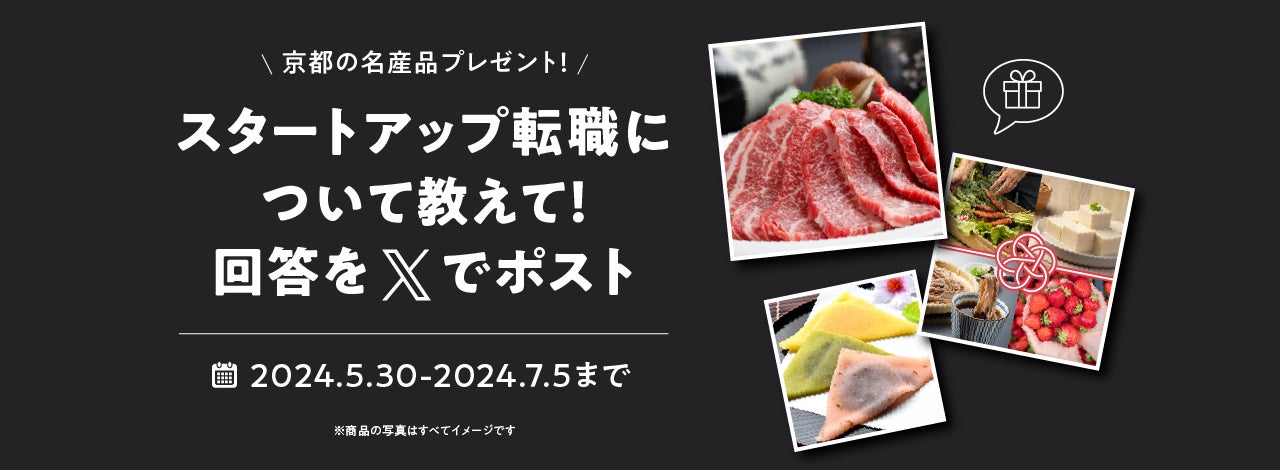 IVS来場者の参加登録開始を記念して、京都の名産品プレゼントキャンペーンを開始します。週ごとに変わるスタートアップの転職についてのお題に対して回答して、Xでポストすること抽選で総額25万円分の京都の名産を40名にプレゼントします。
