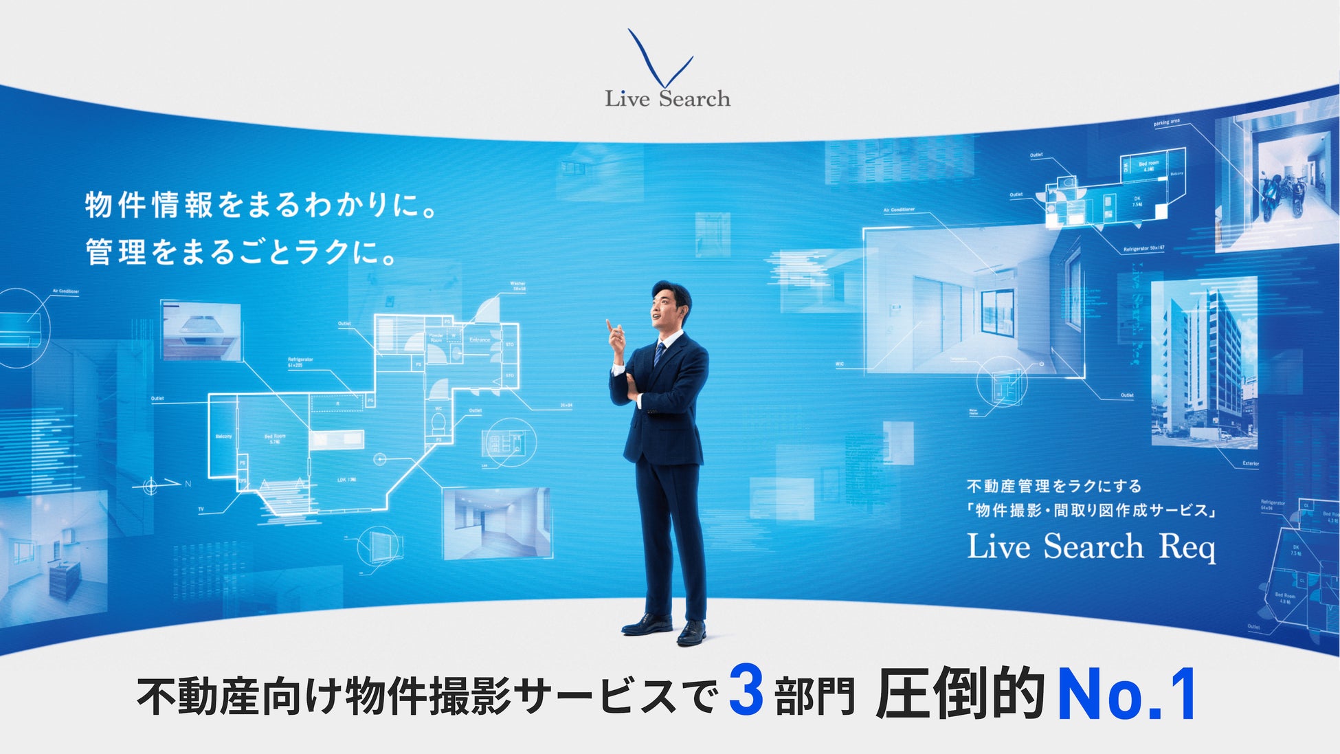 Live Search Reqは、不動産管理業務における、物件情報をまるわかりにし管理業務をまるごとラクにする「物件撮影代行サービス」です。