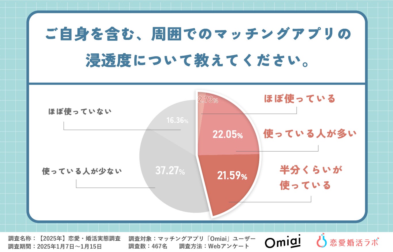 ※当記事のテキストや画像を引用・転載の際は弊社にご一報いただき、『マッチングアプリOmiai・恋愛婚活ラボ調べ』と明記いただきますようお願い申し上げます。