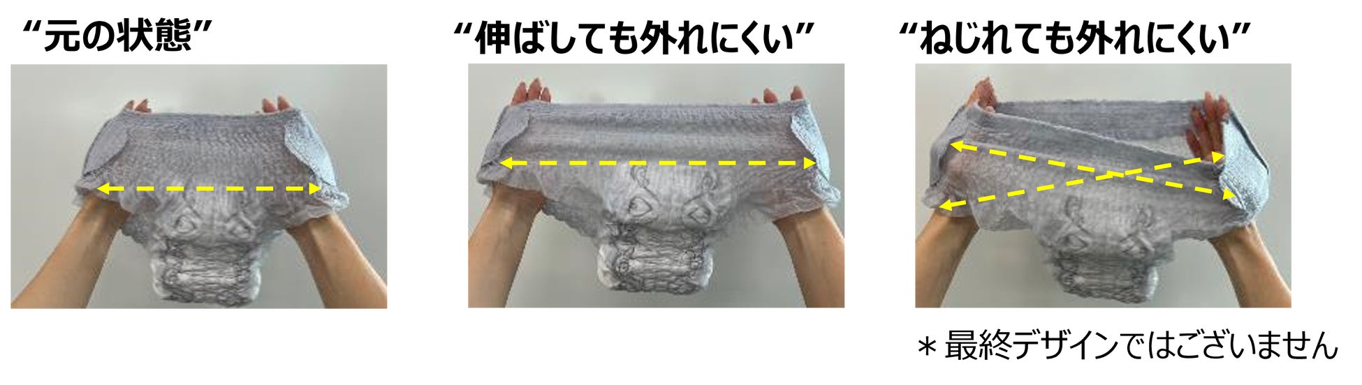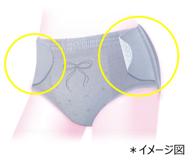そこでこのたび、外出先のトイレでもズボンや靴を脱ぐことなく交換できる『ソフィおでかけ交換ショーツ』を発売します。