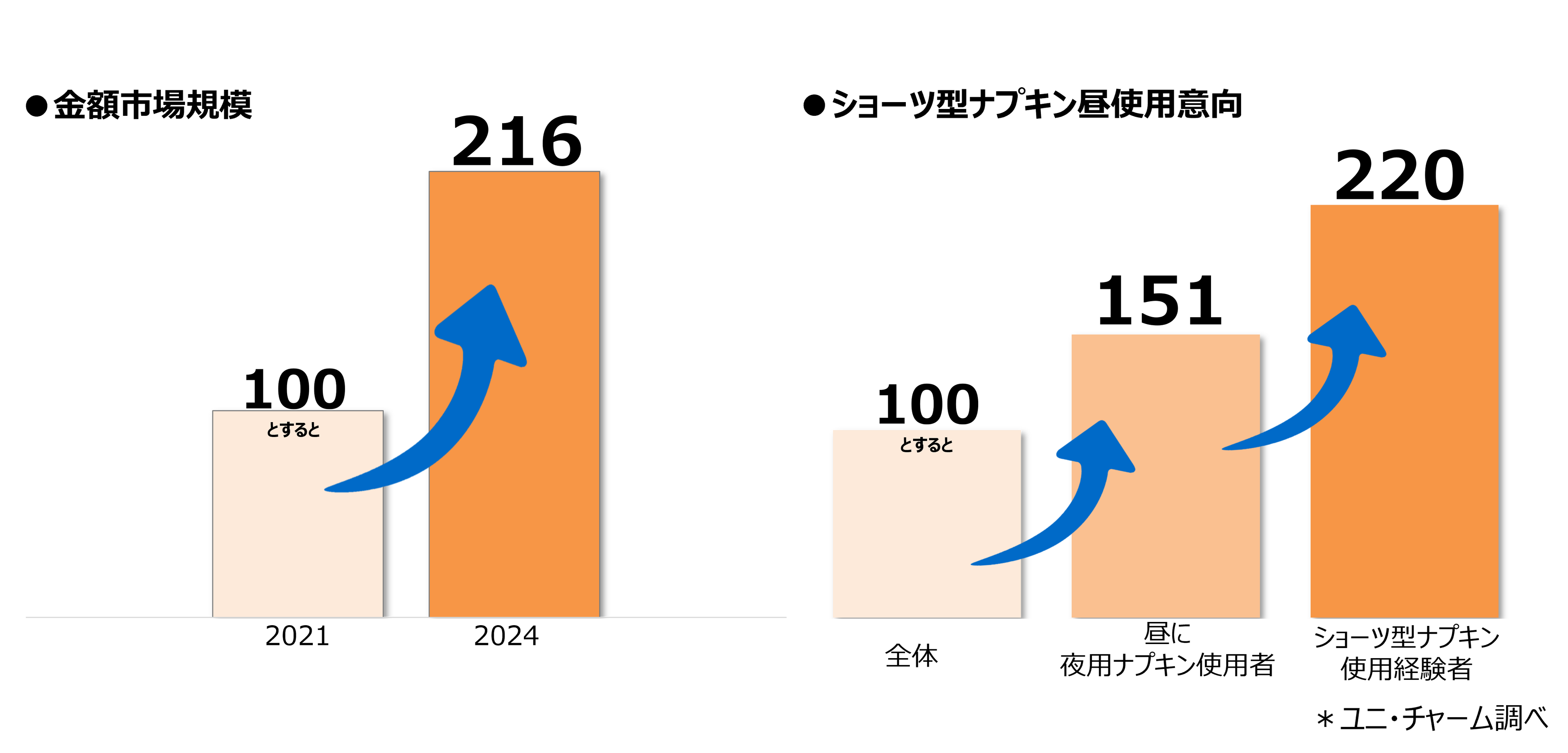 ショーツ型ナプキンは、2021年から2024年の4年間で市場規模が金額ベースで2倍以上※1に拡大し、夜の安心を支える生理用品として定着しています。また、授業や仕事など、ナプキンを自由なタイミングで交換できない日中の外出時において、夜用ナプキンやショーツ型ナプキンを使用する方が増えています。さらに、調査の結果、ショーツ型ナプキン使用経験者の「昼にも使用したい」という意向が高いことがわかりました。※1