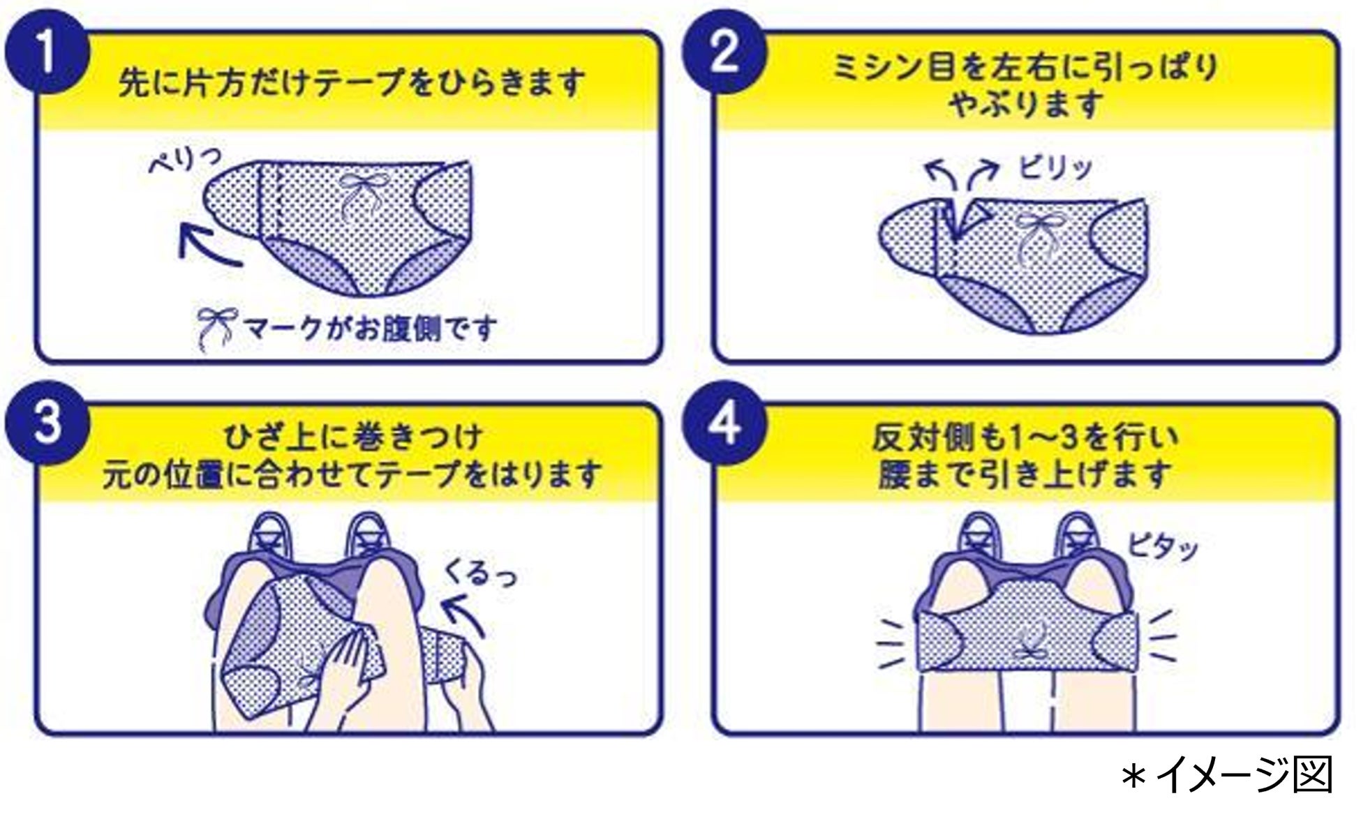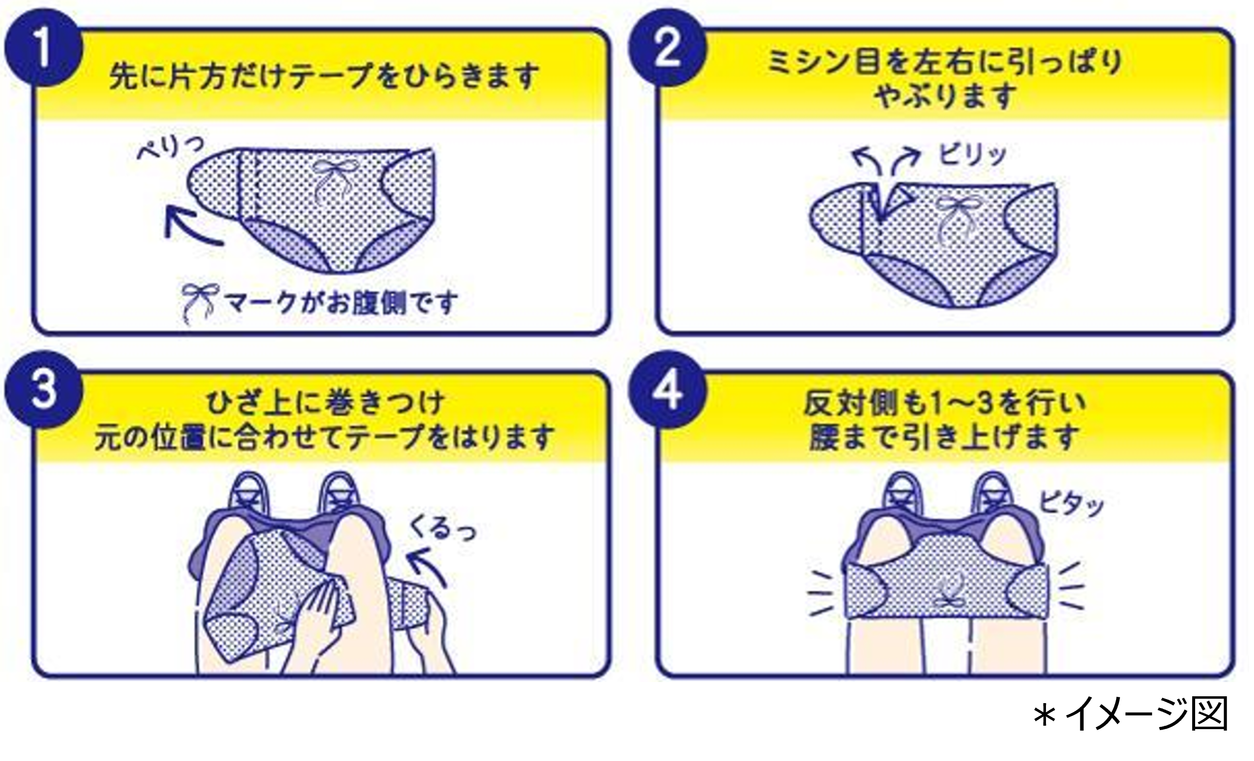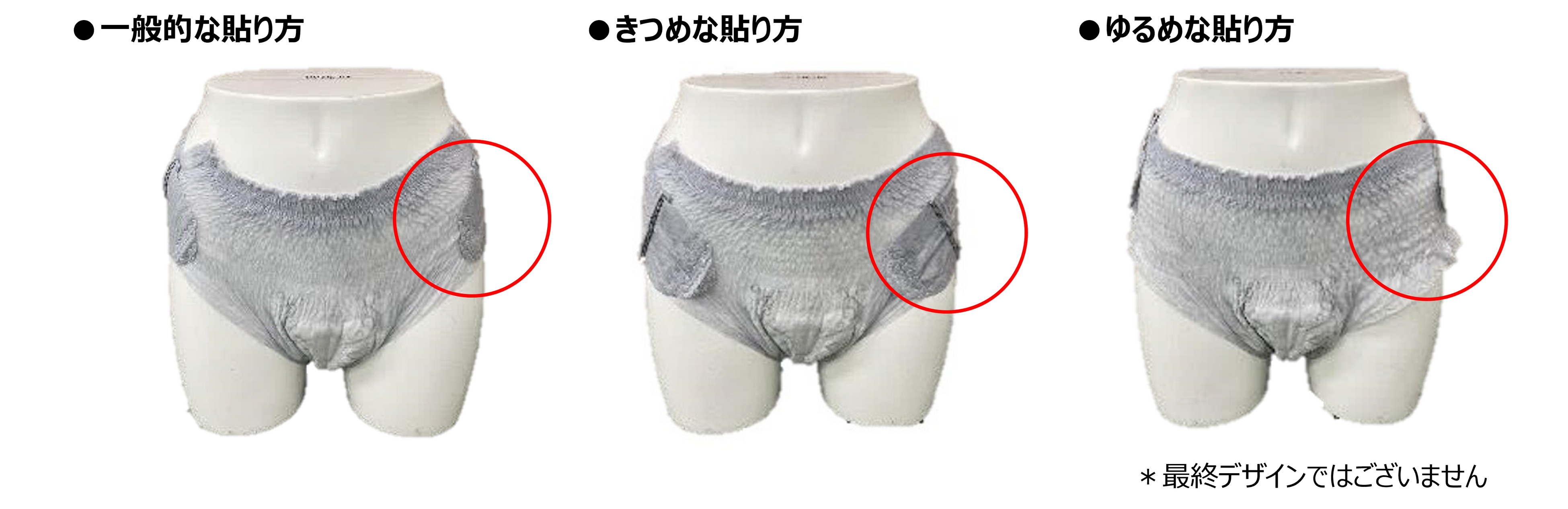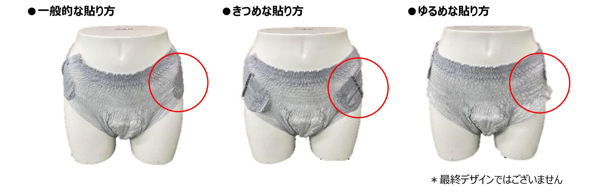 ・独自の“交換テープ構造”により、狭いトイレの中でもズボンや靴を脱がずに交換が可能です。