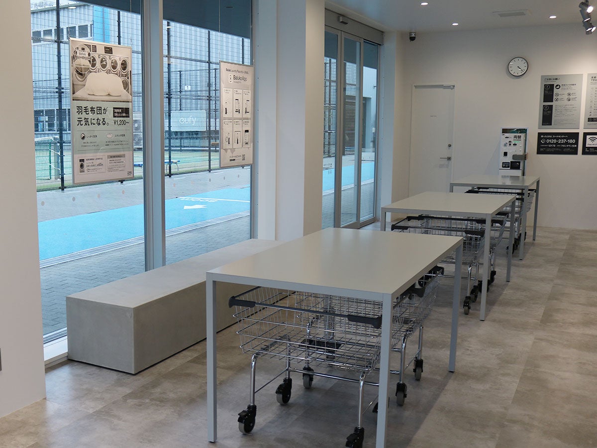 店内には3台の畳台と2つのベンチ、wifiや電源も完備。洗濯を待つ間も店内でゆっくりお過ごしいただけます。