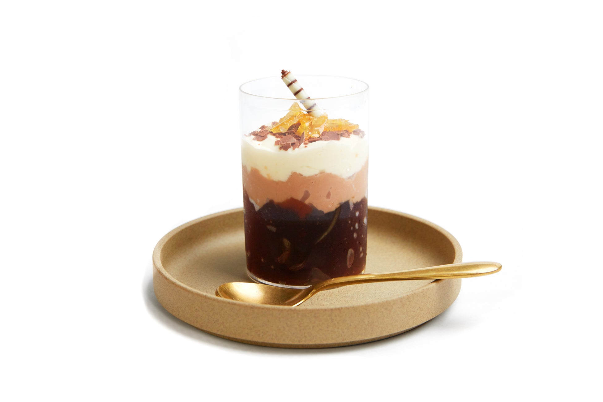 第一弾は「ショコラッテジェラッテ」。コーヒーゼリー、ショコラムース、クリームチーズが層になって重なります。チョコスライス&オレンジピールのトッピングは、チョコレートのまろやかさと浅煎りコーヒーを使ったコーヒーゼリーのさわやかなテイストを一段と引き立てます。あたたかいドリンクと合わせて召し上がっていただくもよし、もちろんそのままスイーツ感覚で楽しむのもよし。ぜひ一度ご賞味ください。