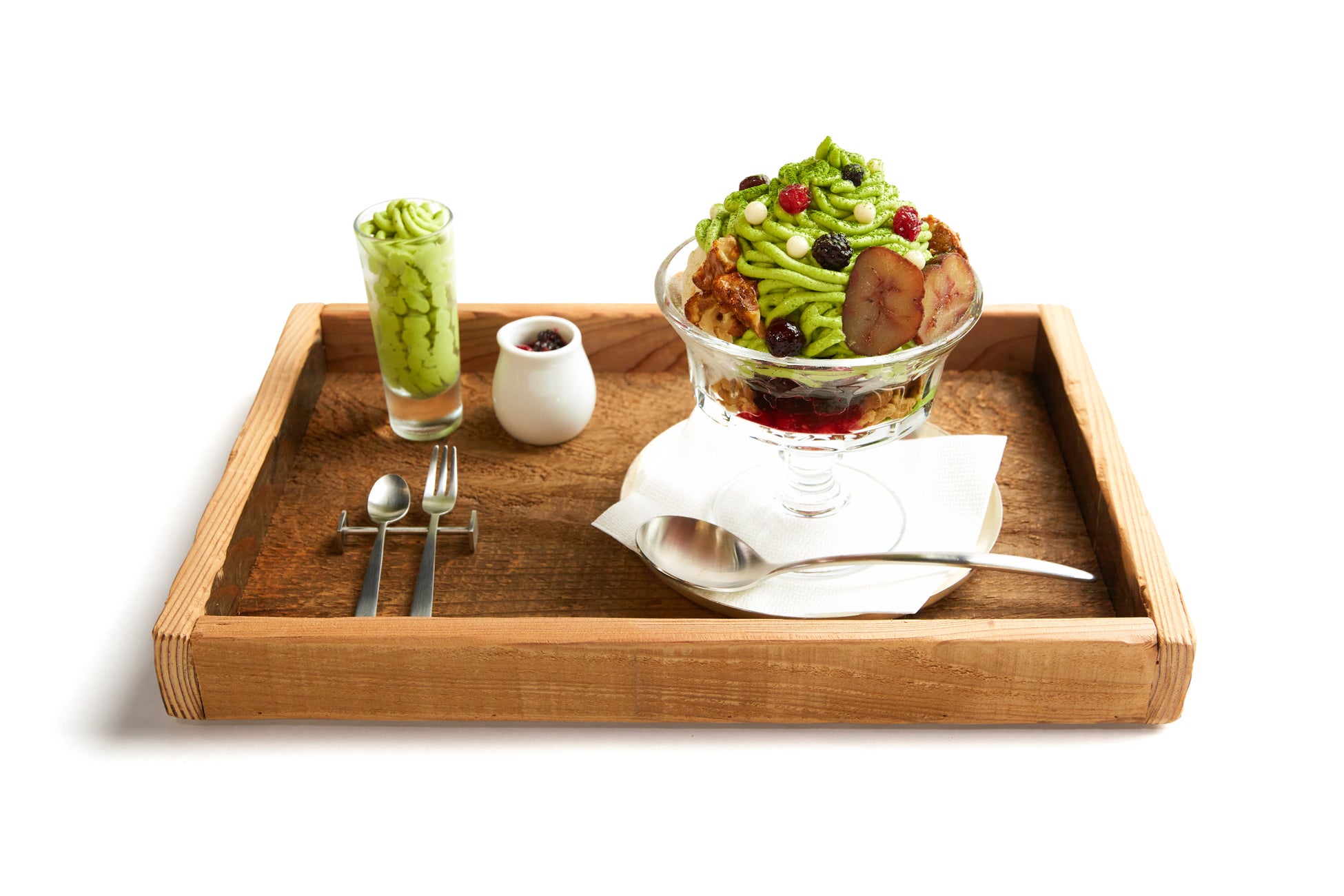 仙台店限定で、冬の季節だけのスペシャルパフェが登場します。抹茶と栗を使用したクリームの下にはバニラプリンアイスと抹茶アイスが入っており、砕いたクッキー生地と一緒に食べるとサクサクした食感がお楽しみいただけます。トッピングには和栗とブラックタピオカ、パールチョコレートを使用し、まるで和風のクリスマスツリーのような雰囲気に。
