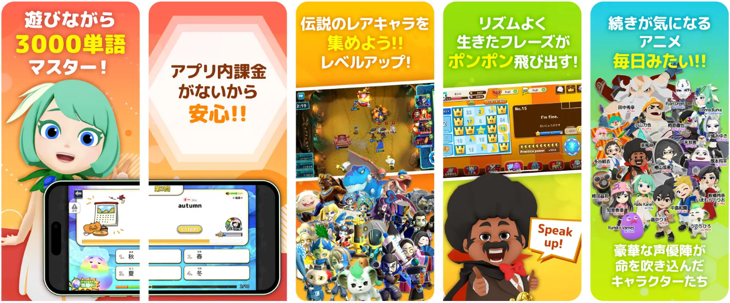 アニメやゲームやクイズを遊んでいるだけで、自然と英語が上達するファンラーニング型・AI英語アプリです。3,000超の高校卒業レベル・英検®2級レベルの英単語、1800超の中学卒業レベルの文型・フレーズが学べて、英検®対策アプリとしても、AIキャラクターとの英会話練習アプリとしても、課金なしに無料で利用し続ける事ができます。