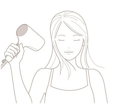 ・初めの30秒程度は、ぬれた毛先中心にミストを噴霧します。その後、毛流れに沿って、全体にまんべんなくミストを噴霧します。