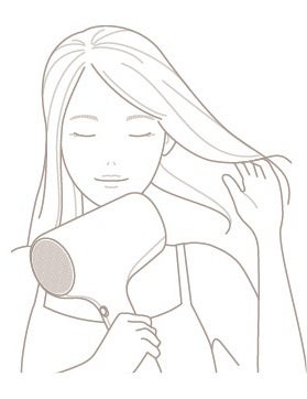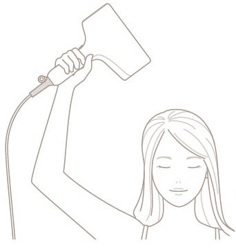 ・毛先へのミスト付着量が少ないと、毛先がパサつくことがあります。風が強すぎて毛先に当てにくい場合は、風量を中または弱にしてください。