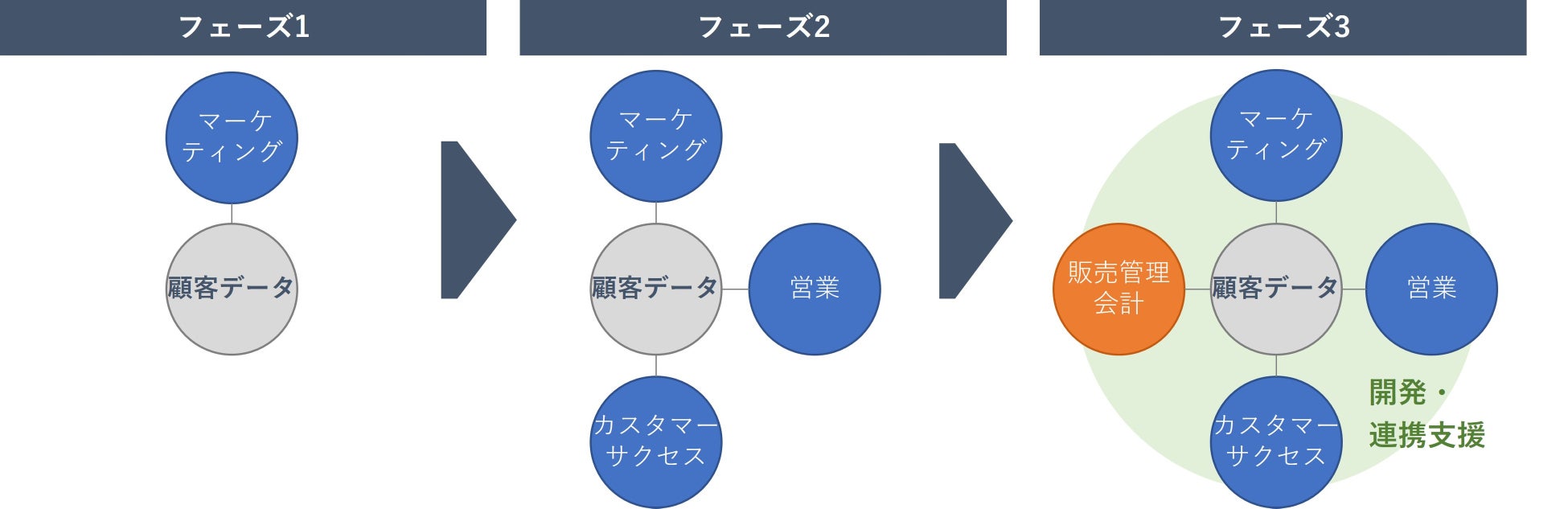 24-7は、MA(マーケティングオートメーション)・SFA(営業支援システム)・CRM(顧客管理システム)の3つのクラウドサービスを用いて、クライアントの経営課題に沿った戦略策定やプロセスの設計、最適なテクノロジーの選定、運用サポートまで、マーケティングや営業領域においてDX支援を行ってきました。以前は顧客管理やマーケティング領域の支援が中心でしたが、昨年度から営業領域のサポートも本格的に開始し、さらに今年度は、より広範囲の企業のバックオフィス部門のDX支援の体制作りと、システム開発や異なるサービス同士の連携業務も始めており、DX支援領域を段階的に拡充させています。今後もDX支援の事業拡大を続けることを見据え、社名を変更することにいたしました。