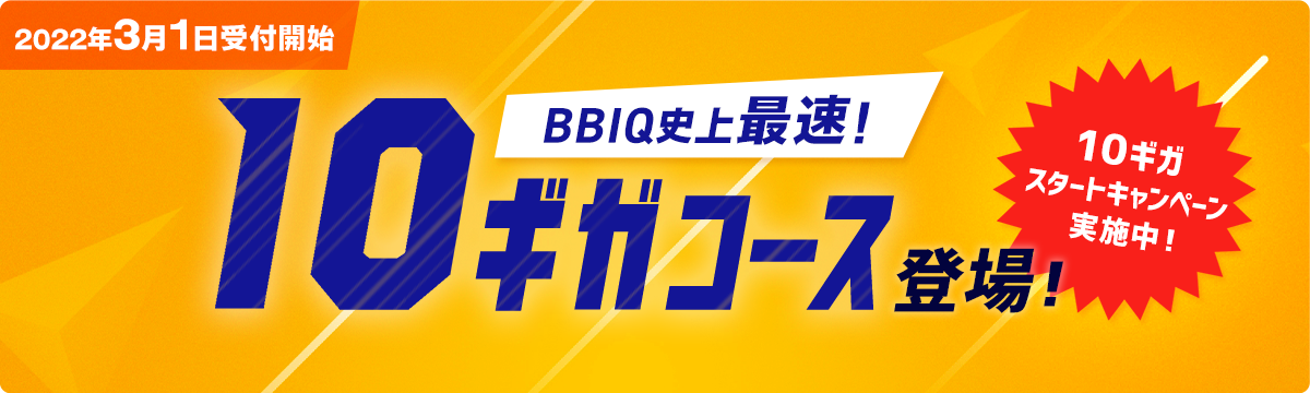 「BBIQ 10ギガコース」「BBIQ 6ギガコース」の詳しい内容につきましては、当社のBBIQ申し込みサイト内のページをご覧ください。