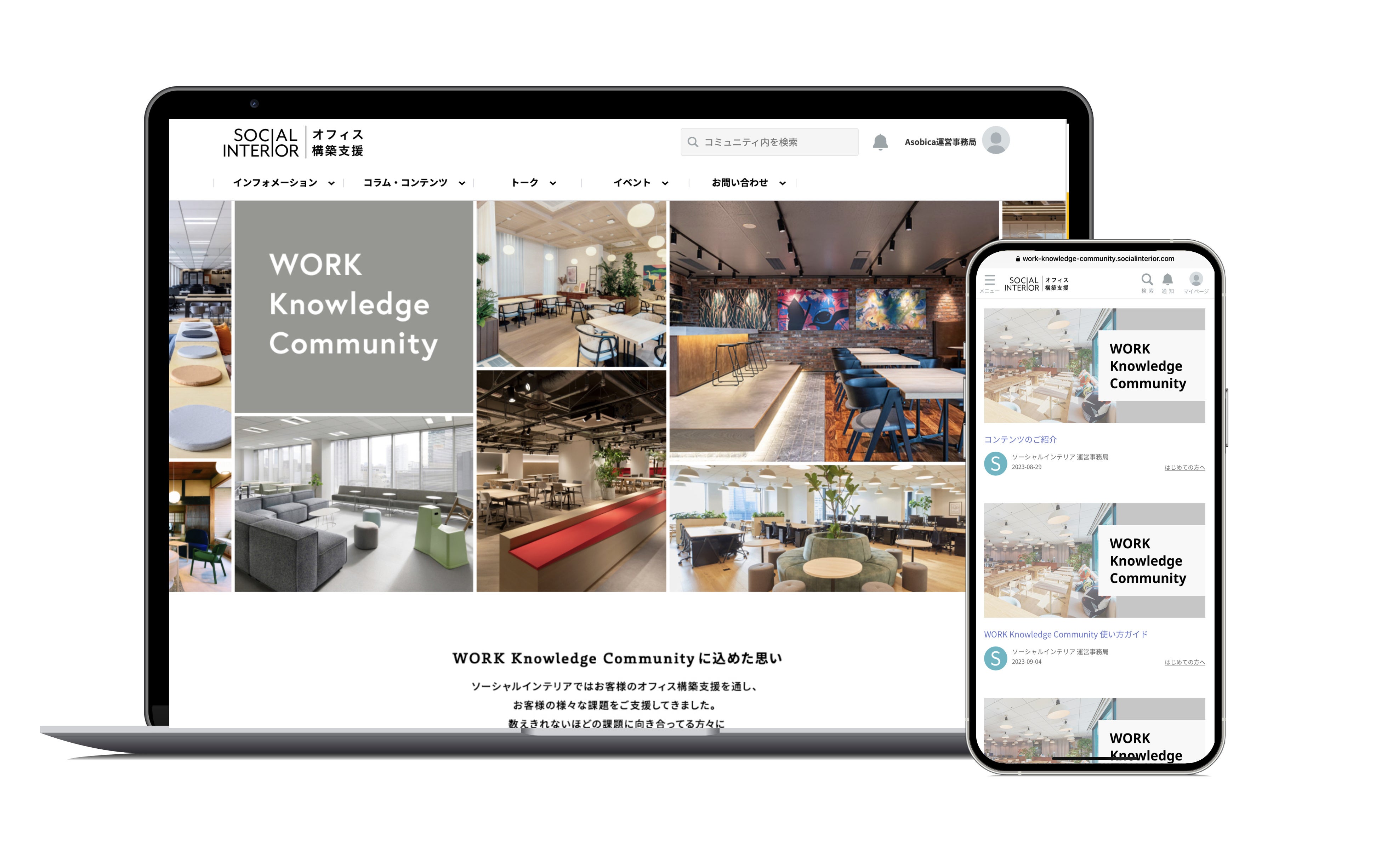 今回オープンしたコミュニティサイト「WORK Knowledge Community」では、オフィスやワークスペースを快適に過ごすための情報交換・お悩み相談を行うことができます。