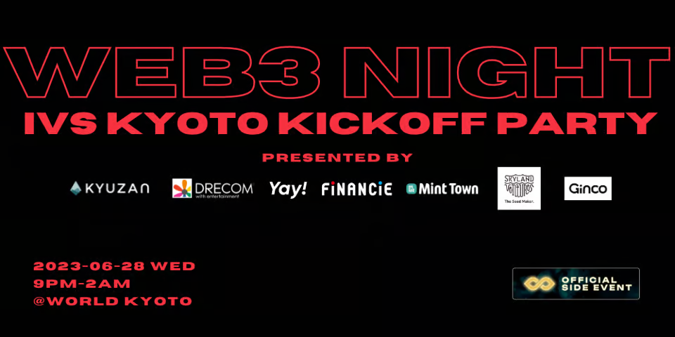 Web3の主要プレイヤーグループKyuzan、Drecom、Yay!、FiNANCiE、Mint Town、Skyland Ventures、GincoがIVS参加者とWeb3ビルダーに向けて開催します。