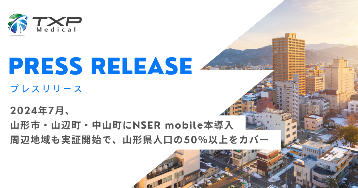 2024年7月12日(金)より、山形市消防本部ではTXP Medicalの救急搬送支援システム「NSER mobile」を導入します。このシステムは、救急搬送困難事案の解消とEBPM(Evidence-based policy making:エビデンスに基づく政策立案)の推進を目的とした「救急医療情報共有システム」として、運用されます。 また、山形市消防本部エリアに隣接する周辺6市5町(上山市、村山市、天童市、東根市、尾花沢市、大石田町、寒河江市、河北町、西川町、朝日町、大江町)においても同システム導入検討のためのプロジェクトとして、同日より実証実験が行われます。 村山地域全域でNSER mobileの利用が始まり、山形県人口約102万人の50%以上の人口をカバーします。
