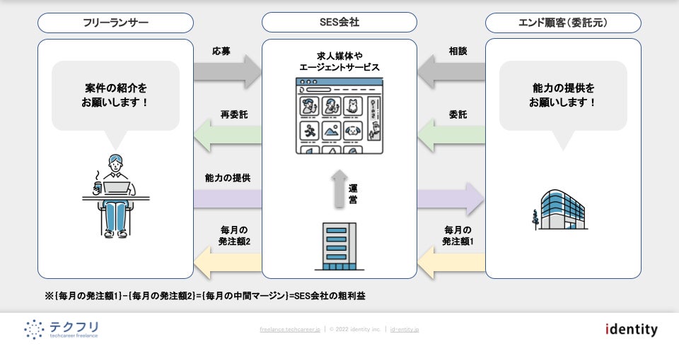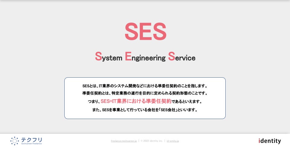 ITフリーランスエンジニアの案件・求人サイト「テクフリ」(https://freelance.techcareer.jp/)を運営する株式会社アイデンティティー(東京都新宿区、以下「当社」)は、当社が14年以上展開しているSES事業のノウハウを元に、SESに関する解説資料を作成・公開いたしました。