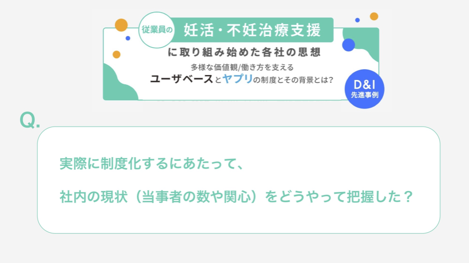 センシティブな話題であることもあり、何名かから要望はあったものの、会社にとって本当に必要な制度か判断しにくかったですね。そこで、匿名参加の条件で「コウノトリBenefit」主催セミナーを開催したところ、70~80名が参加。会社が個人のライフイベントに寄り添ってくれていたのが嬉しいという声が多く寄せられ、制度化を決めました。