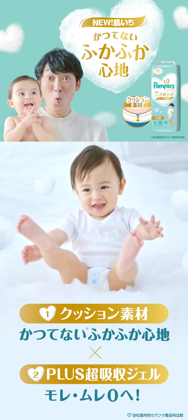 パンパースは、赤ちゃんの健やかな成長を応援する乳幼児用紙おむつブランドです。日本では1977年から発売され、当時主流だった布おむつにかわり、日本における紙おむつの普及に貢献。以来、すべての赤ちゃんの健やかな成長と幸せ、そしてご家族の育児を応援し続けています。今では、紙おむつ売上No.1*8、さらに日本の病産院で選ばれてNo.1*9のブランドです。