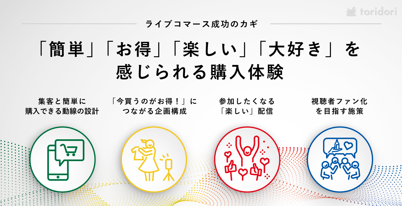 Gripでは下記4つのポイントを意識することが、ライブコマース成功の鍵であると考えています。