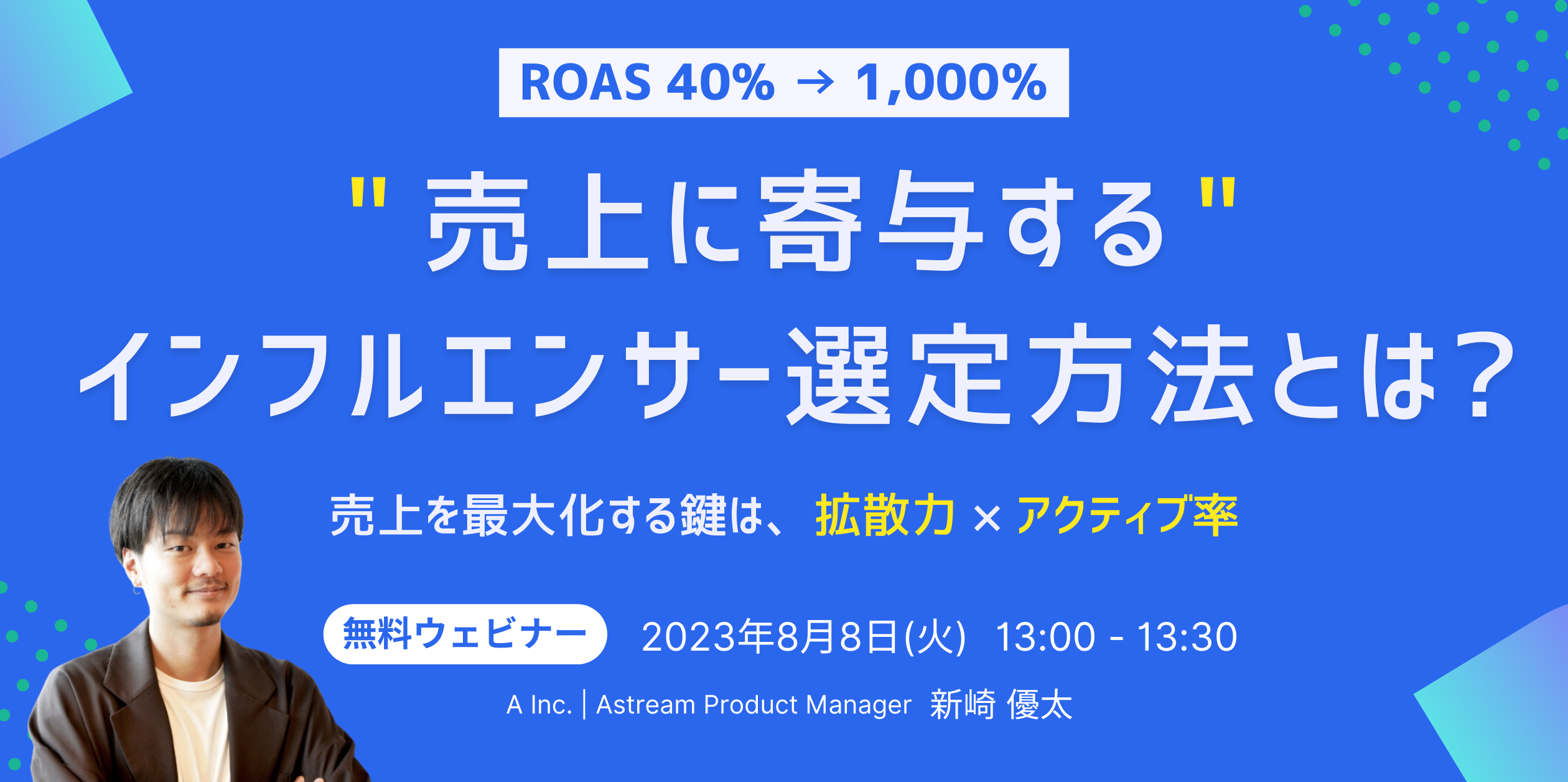 インフルエンサーマーケティングツールA STREAMが「売上に寄与するインフルエンサー選定方法とは?」無料ウェブセミナー開催決定