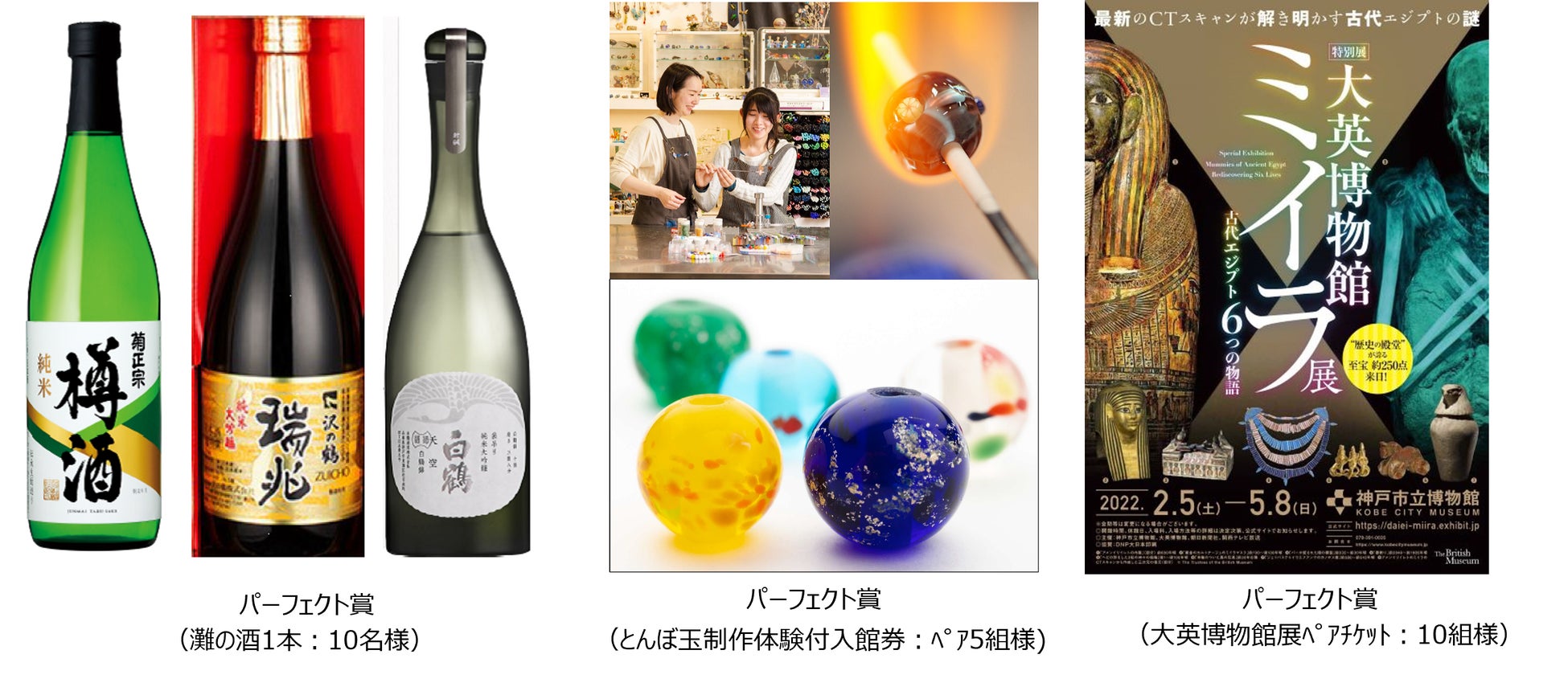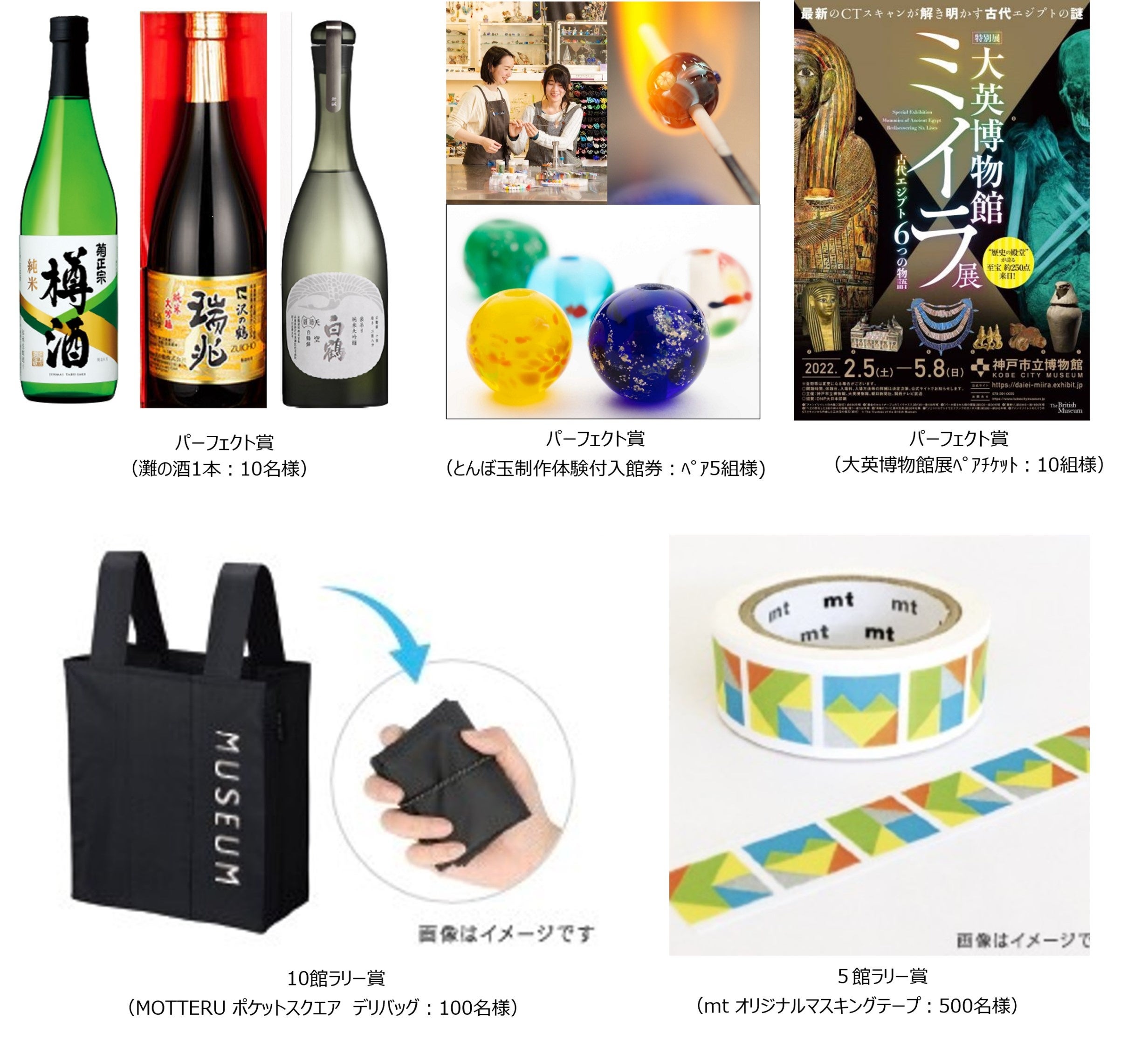 ※「パーフェクト賞」は、「KOBEとんぼ玉ミュージアム」でのみ交換となります。