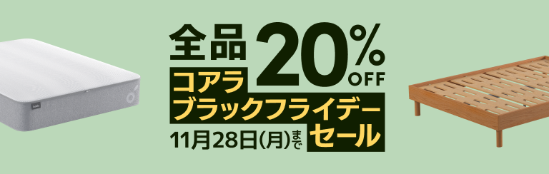 「コアラブラックフライデーセール」では、マットレスの他、ピローやソファーなど、コアラブランドの全商品を20%OFFでお買い求めいただけます。