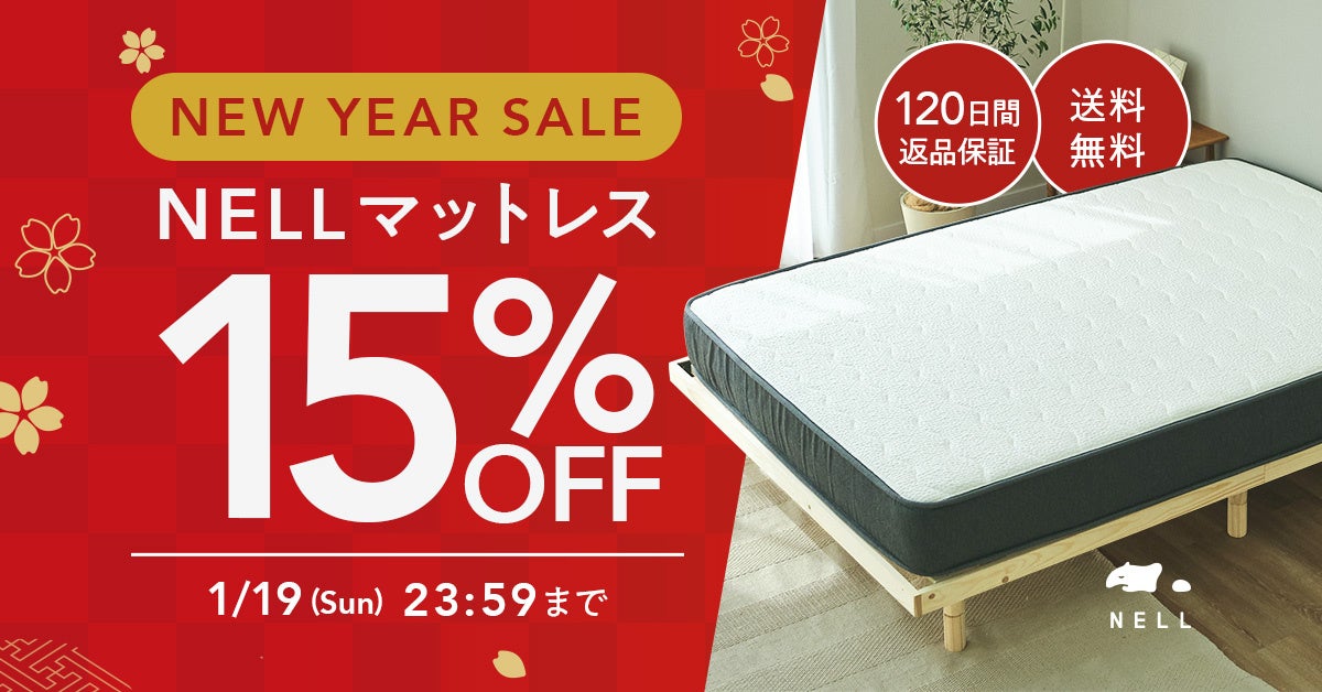 上質な寝心地を手に届く価格でお届けする、こだわりの寝具ブランド「NELL(ネル)」を提供する株式会社Morght(本社:東京都港区、代表取締役:土井皓貴、読み:モート)は、2025年1月10日(金)10:00から1月19日(日)23:59まで、「NELL マットレス」および「NELL ボックスシーツ」が全サイズ15%OFFとなる割引セールを実施します。