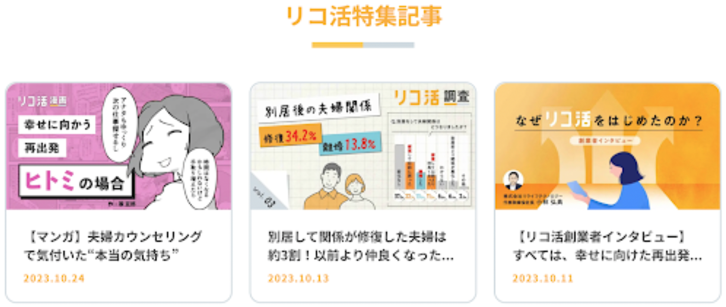 リコ活では、さまざまな角度から離婚や夫婦問題を捉え、特集記事(https://ricokatsu.com/pickup-articles)として発信しています。
