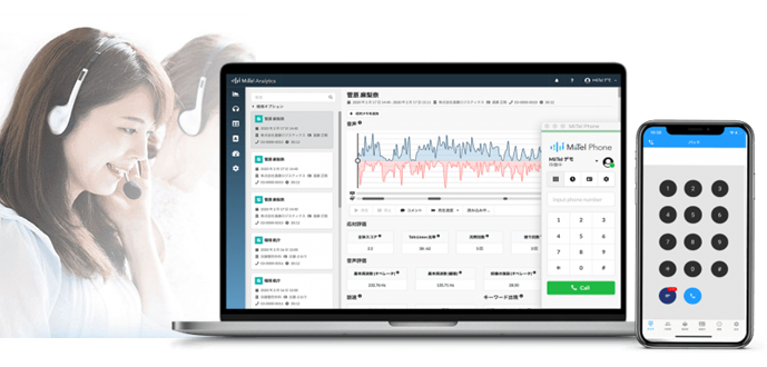 音声解析AI電話「MiiTel」は、インサイドセールス市場を中心に、営業やコールセンター業務におけるトークの可視化とセルフコーチング、リモートワーク体制構築にご活用いただいています。また、オンライン商談ツール「MiiTel Live」は、複数人でのオンライン商談の解析や振り返りが可能となり、営業の成約率を飛躍させます。