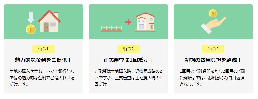 土地先行型住宅ローン※1を取扱うのは、ネット銀行初となります※2。