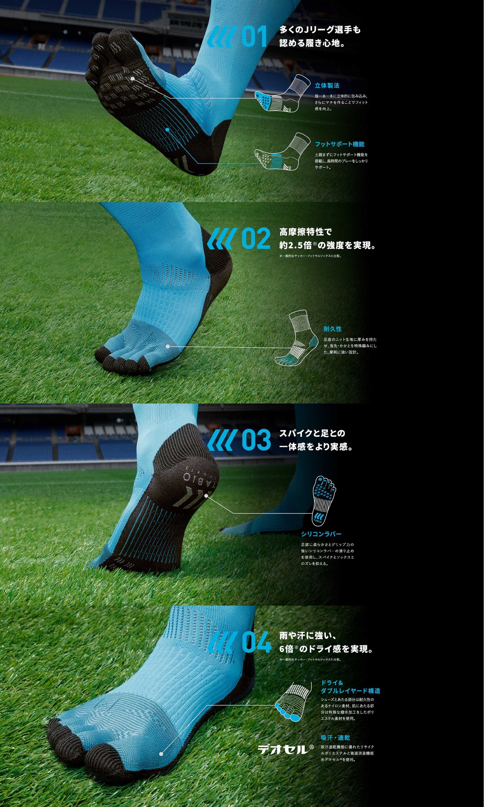 ピッチを縦横無尽に駆け抜けるトッププレイヤーの要望に応え、2015年から複数のJリーグ所属クラブ・選手へのヒアリング調査、モニタリングを実施し2016年9月にスタートしました。