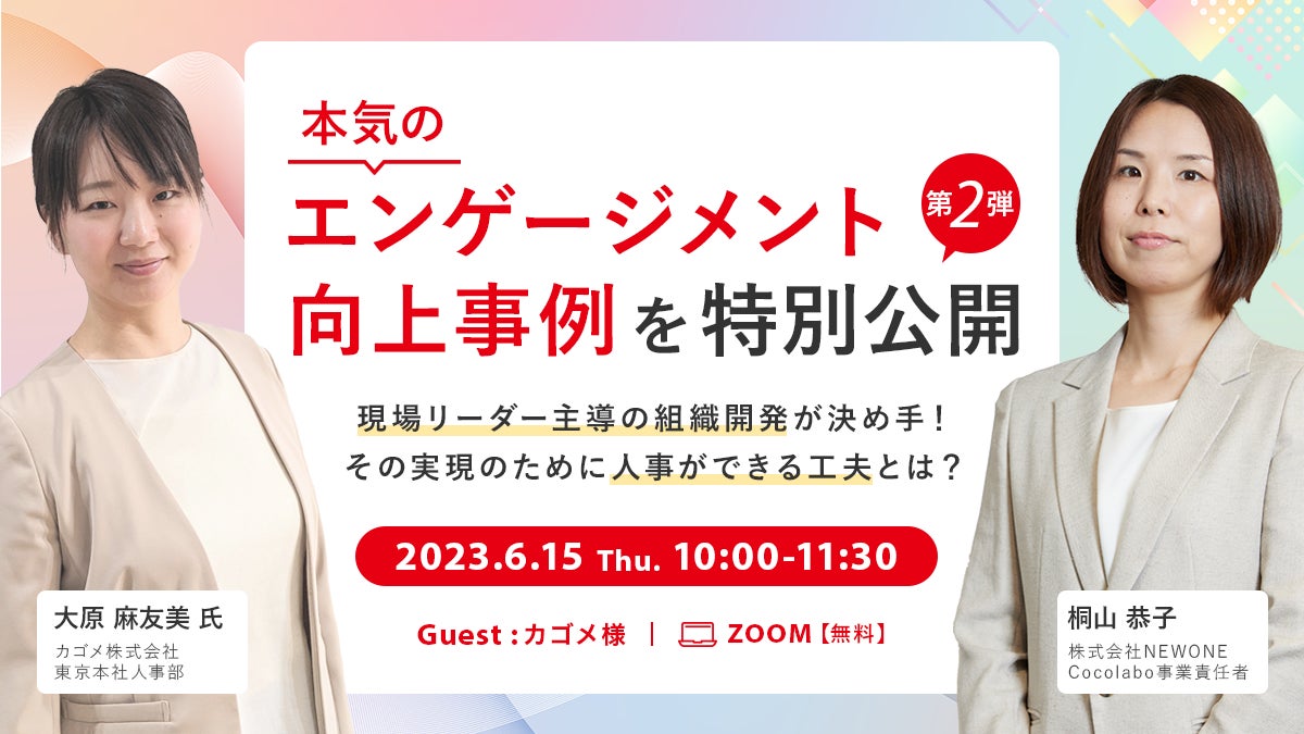 エンゲージメント向上を軸とした組織開発・人材育成コンサルティング支援を行う株式会社NEWONE(本社:東京都千代田区 代表取締役:上林周平、https://new-one.co.jp/ 以下、NEWONE)は、この度、エンゲージメント向上のための組織開発を現場リーダーに導入し、様々な取り組みに挑戦されているカゴメ株式会社東京本社人事部 大原麻友美氏をゲストにお迎えし、「現場リーダーによる組織開発を実現するために人事ができる工夫とは?」をテーマに、2023年6月15日(木)10:00-11:30にオンラインで事例紹介セミナーを実施いたします。