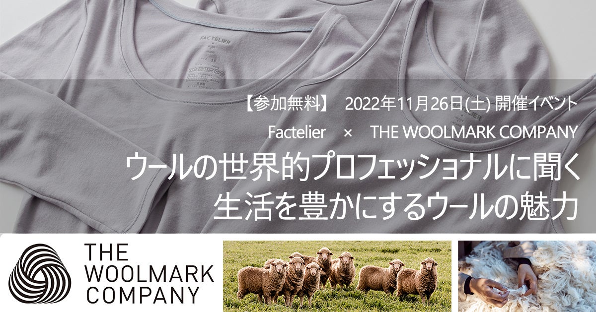 日本の語れるものだけを届けるファッションブランド「ファクトリエ」は、実はあまり知られていないウールの世界を知っていただくイベントとして、「ウールの世界的プロフェッショナルに聞く、生活を豊かにするウールの魅力」と題したイベントを11月26日18:30〜リアルとオンラインのハイブリットで開催します。参加は人数限定で先着順となります。奮ってご参加ください。(お申込みページ:http://bit.ly/3OpIxPo)