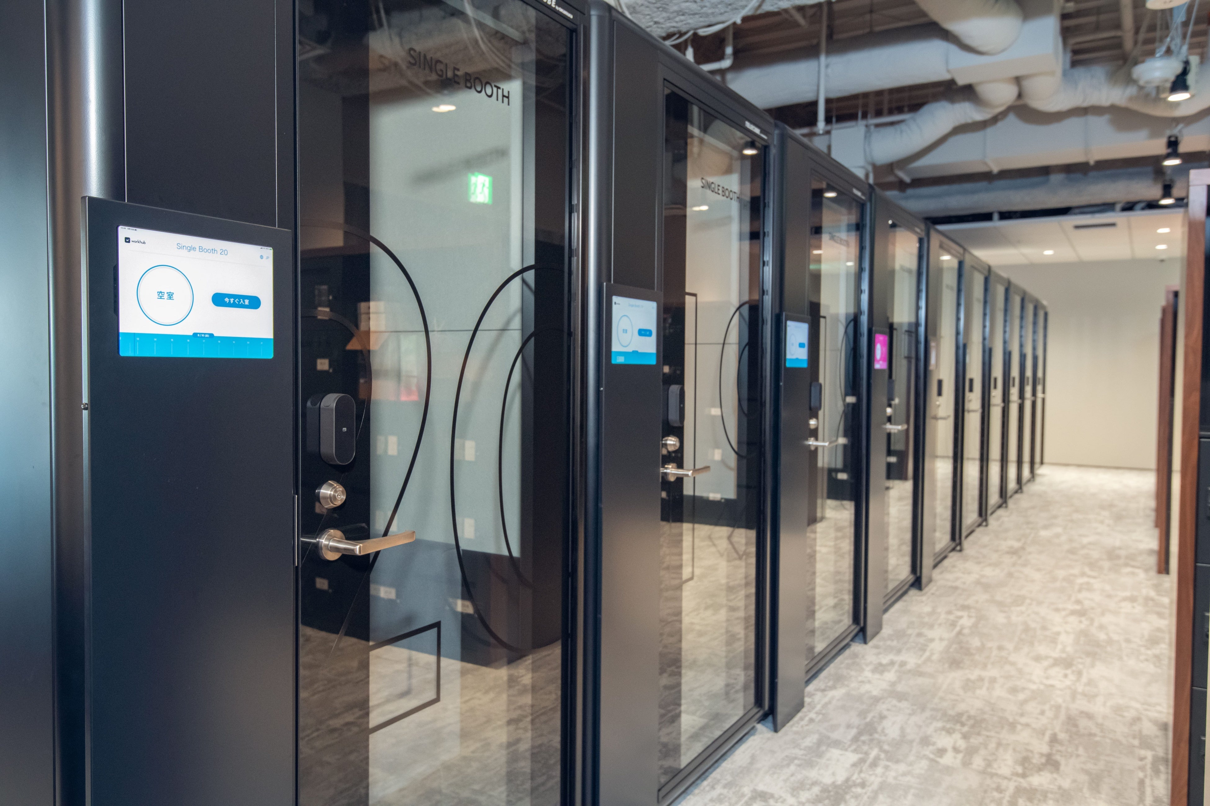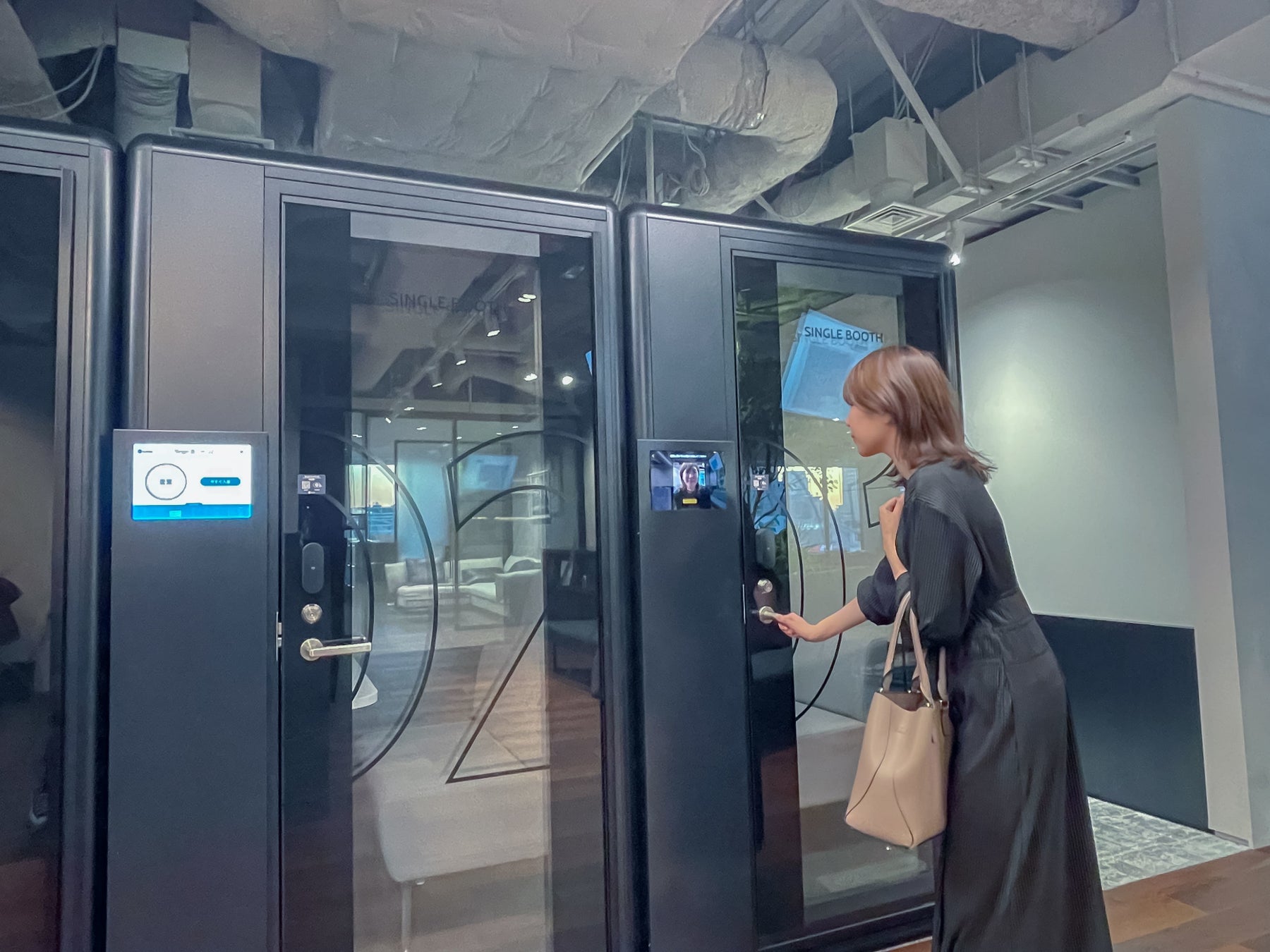 写真:顔認証でカギを解錠し、ワークブースを利用する様子