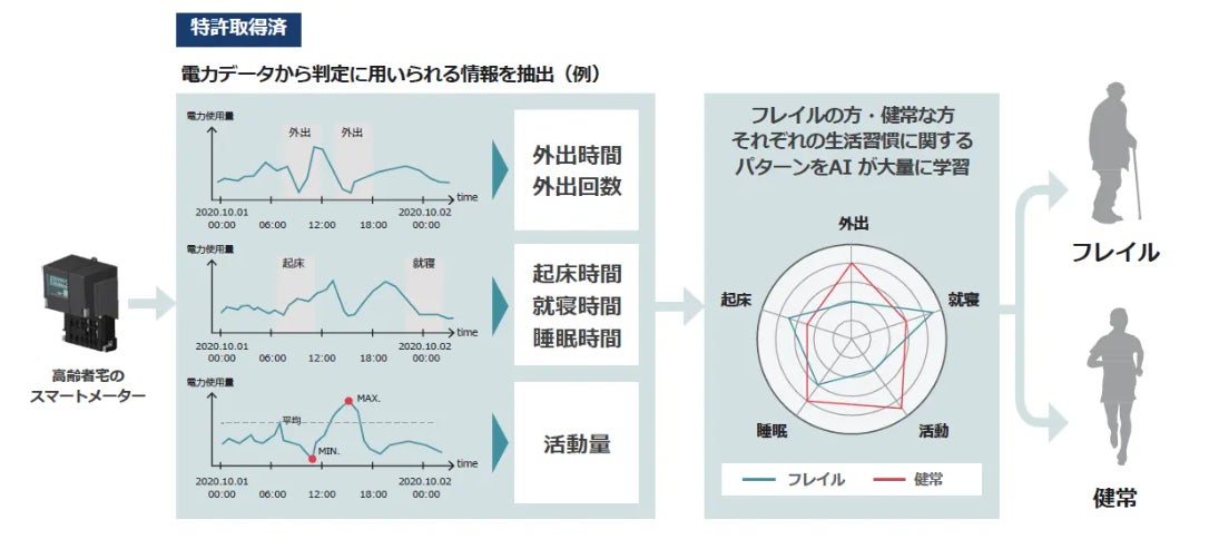 日本全体でますます高齢化が進行し、医療費や介護給付費の増加が大きな社会課題となる中、このフレイル検知AI技術を活用することで、高齢者のフレイルリスクを継続的に把握することができ、早期発見や個別的支援の効率化が可能になります。活用する電力データは全国に普及するスマートメーターで取得するため、センサー類等の追加設備の設置も不要であり、導入自治体は医療費や介護給付費の大幅な抑制も期待できます。現在、三重県東員町、長野県松本市、三重県鳥羽市の3自治体が導入しており、この取り組みが全国の自治体に展開されることにより、より多くの方が日常生活を送る中でフレイル対策を行うことが可能になります。